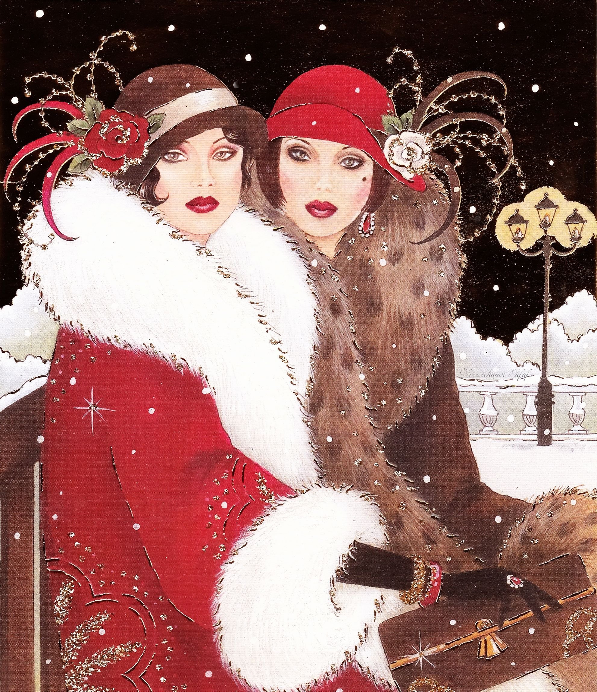 ![Новогодние открытки в старинном стиле]()