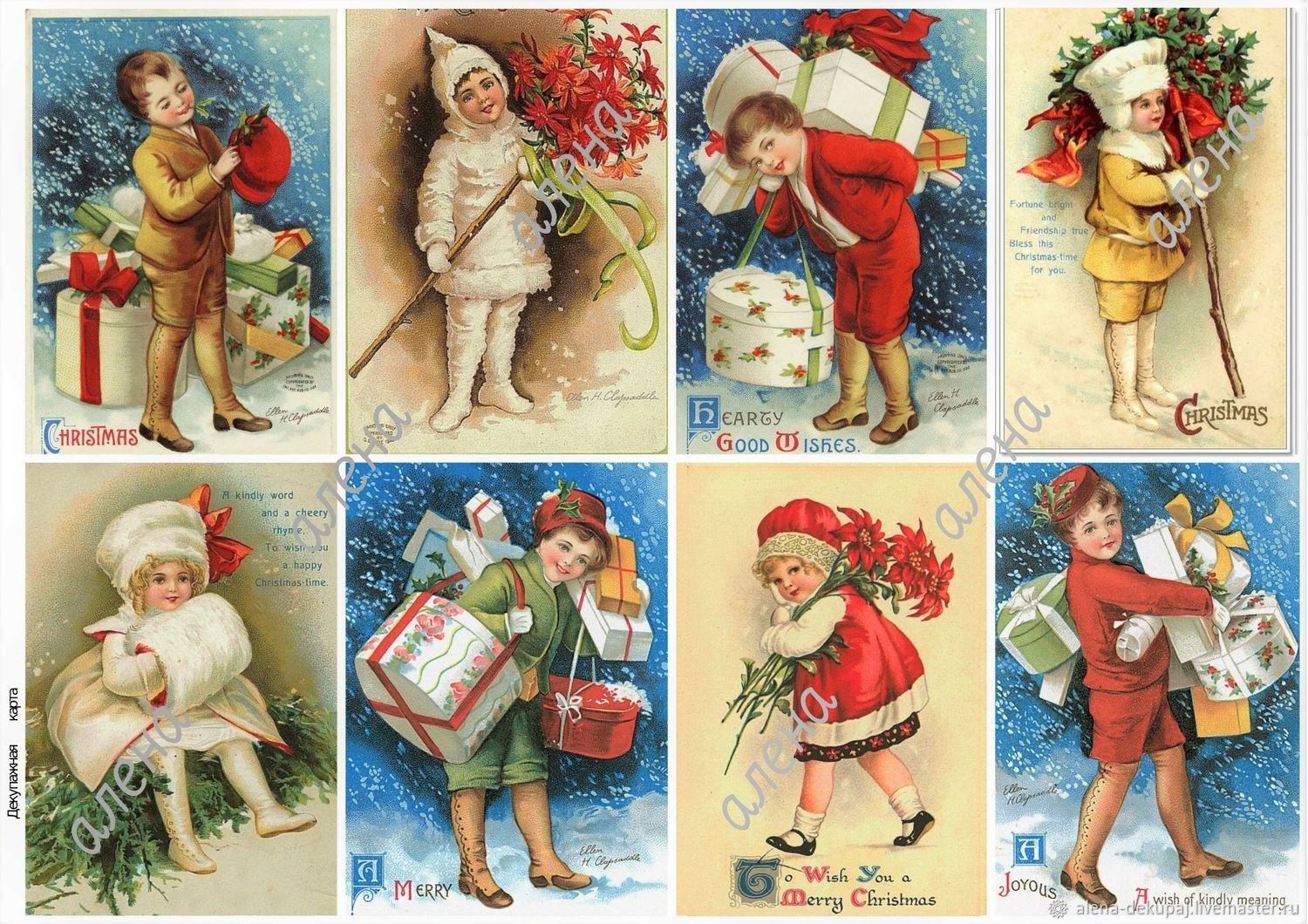 Старинные открытки для декупажа Рождественские