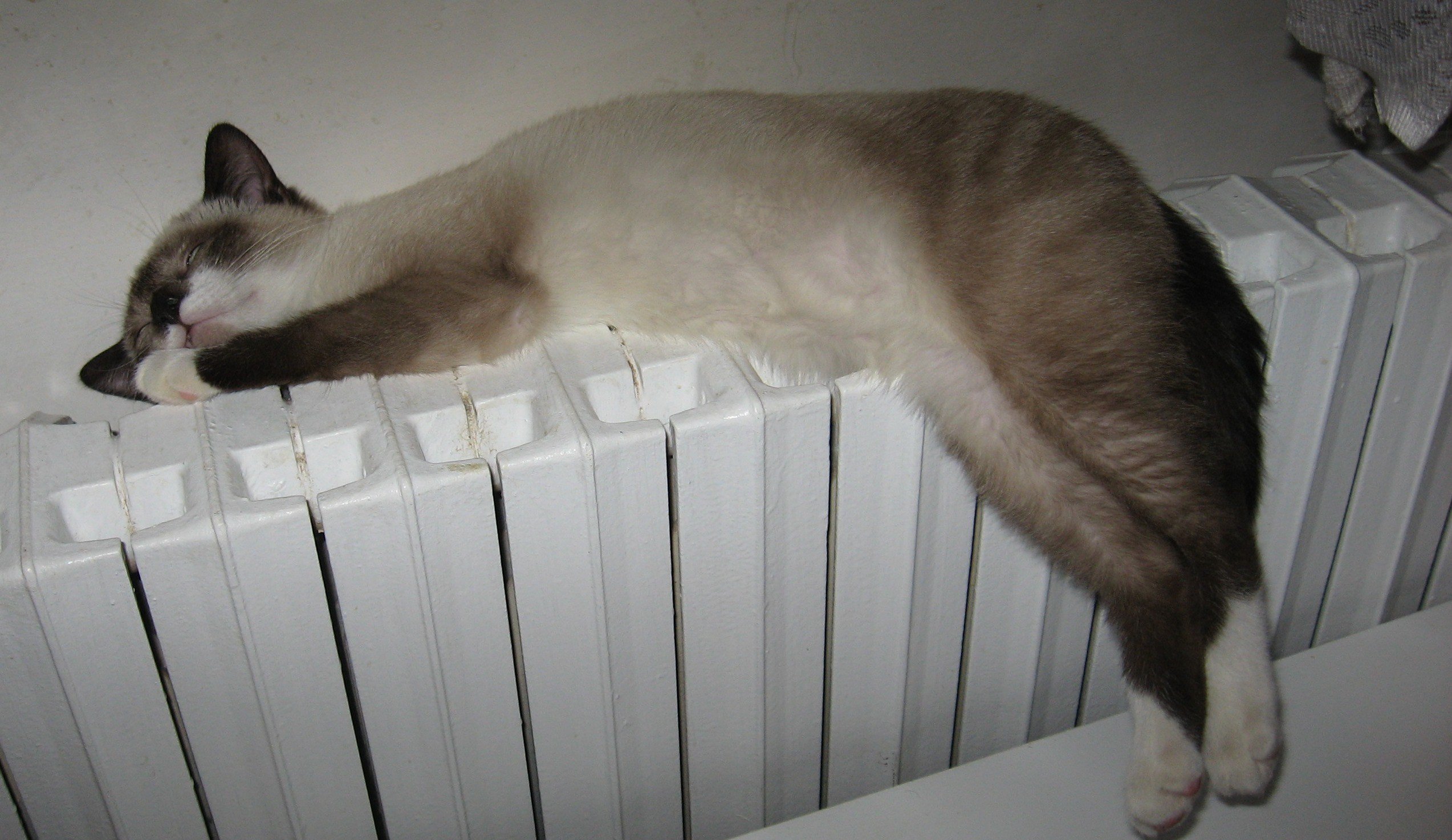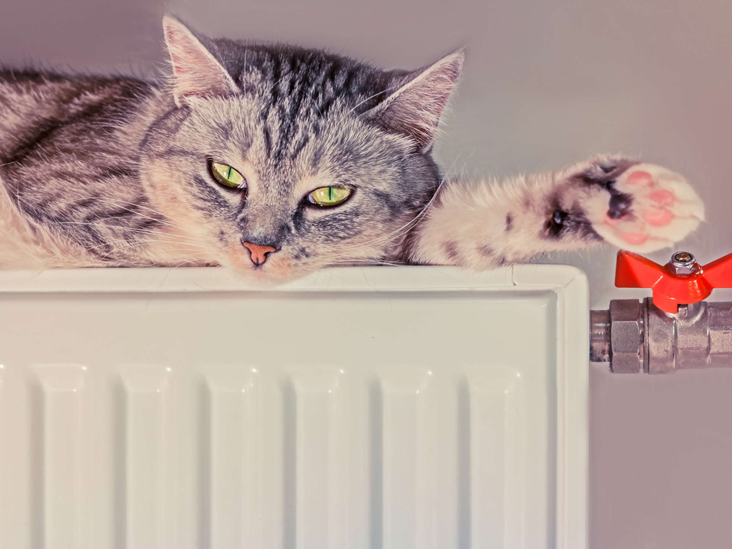 Кот на батарее отопления