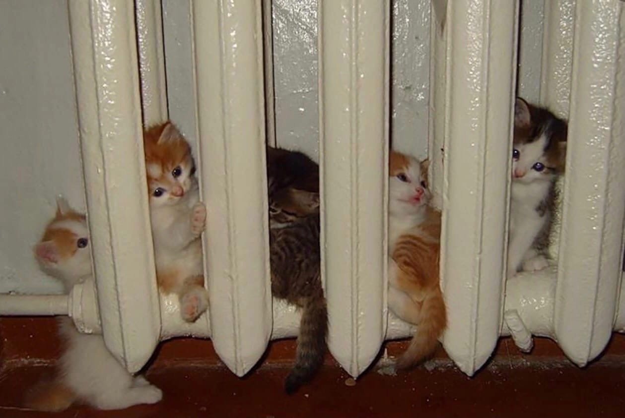 ![Кот на батарее отопления]()