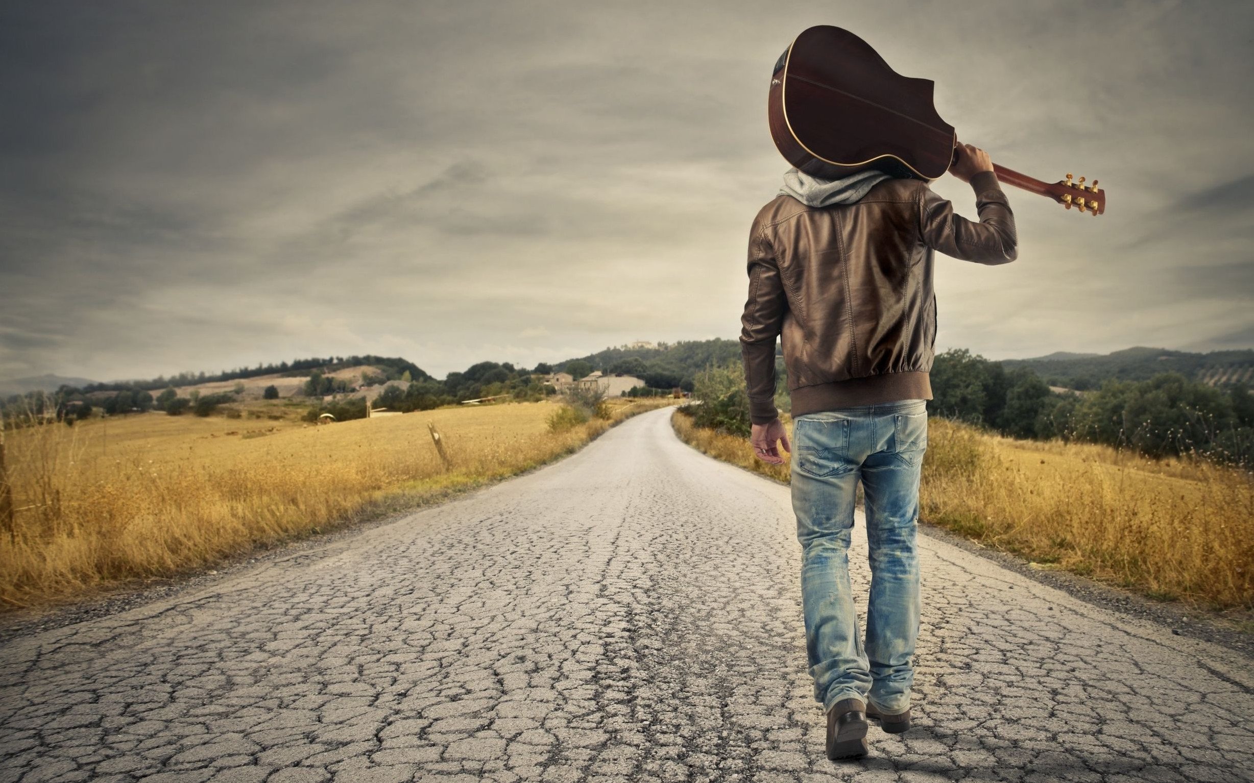 Мужчина идет по дороге