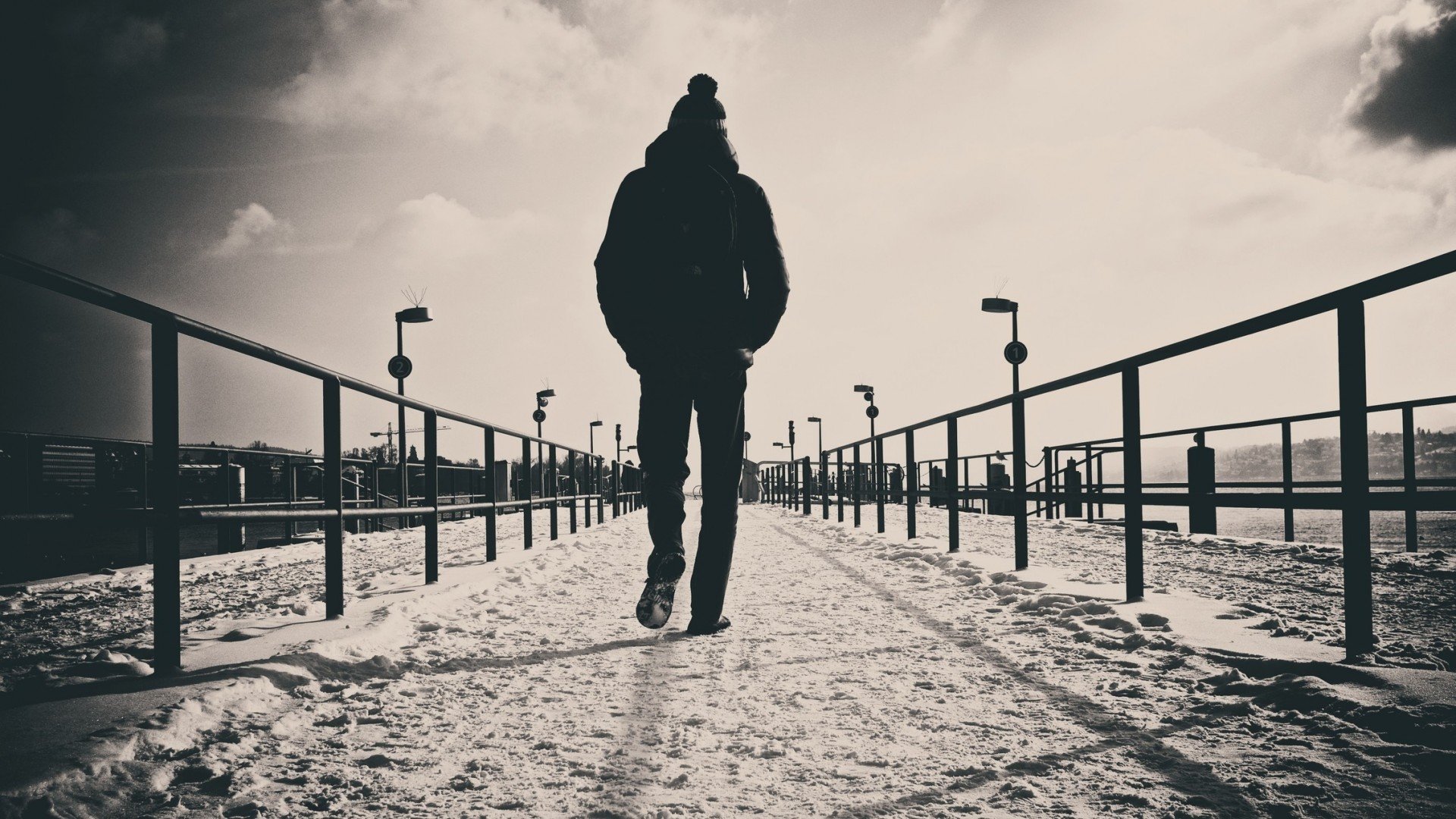 Одинокий человек на мосту
