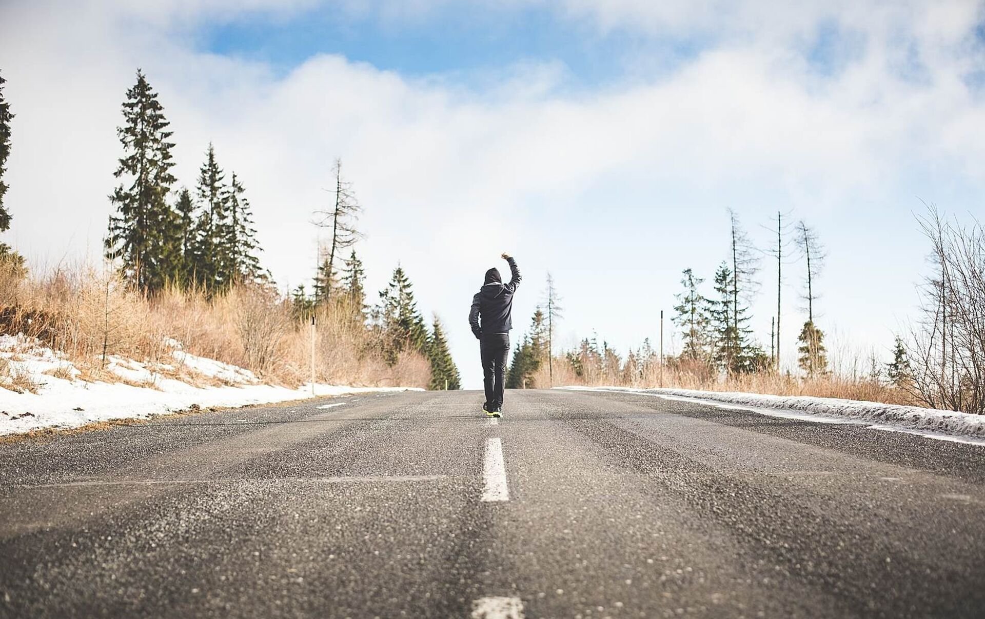 Человек идет по дороге