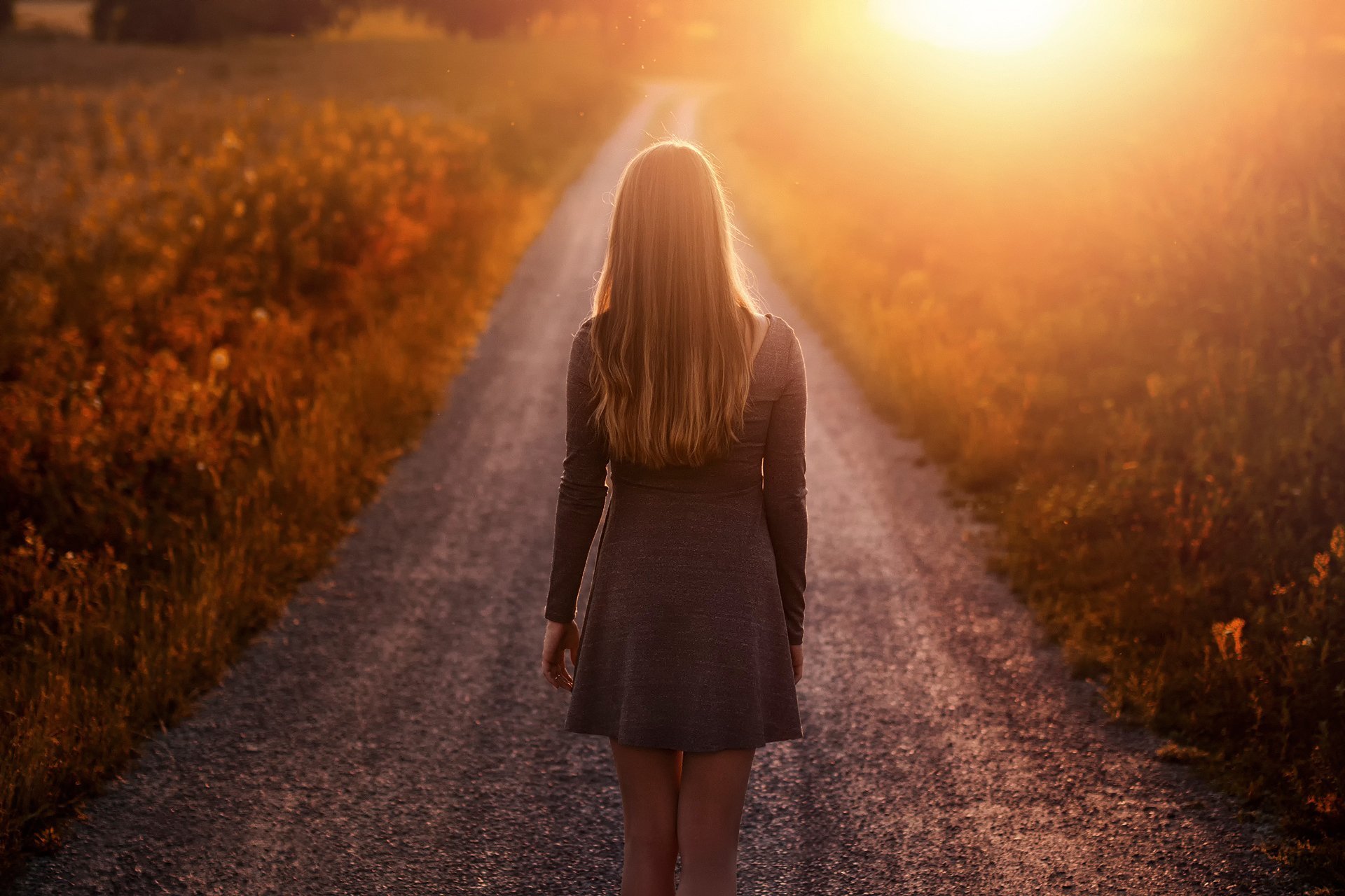 Девушка уходит в закат