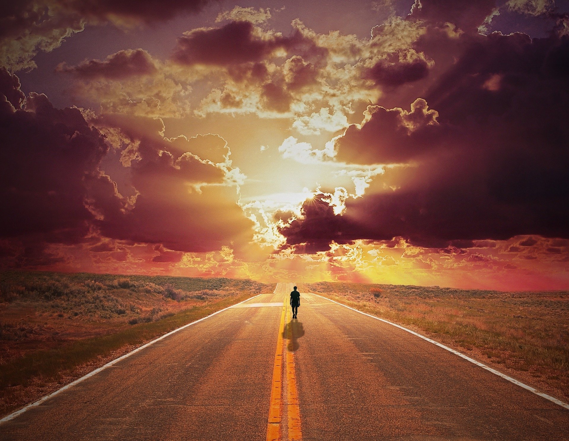Человек уходит в закат