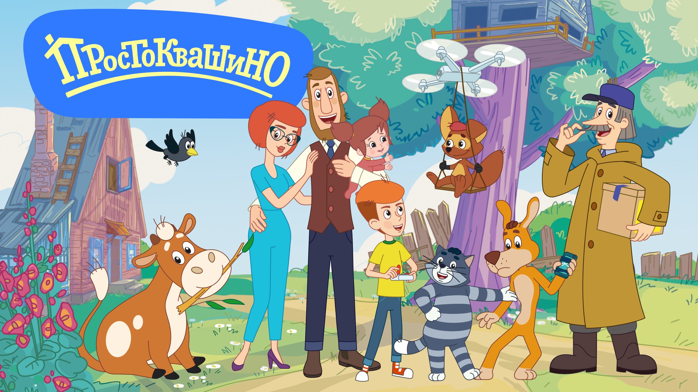 ![Персонажи мультфильма Простоквашино]()
