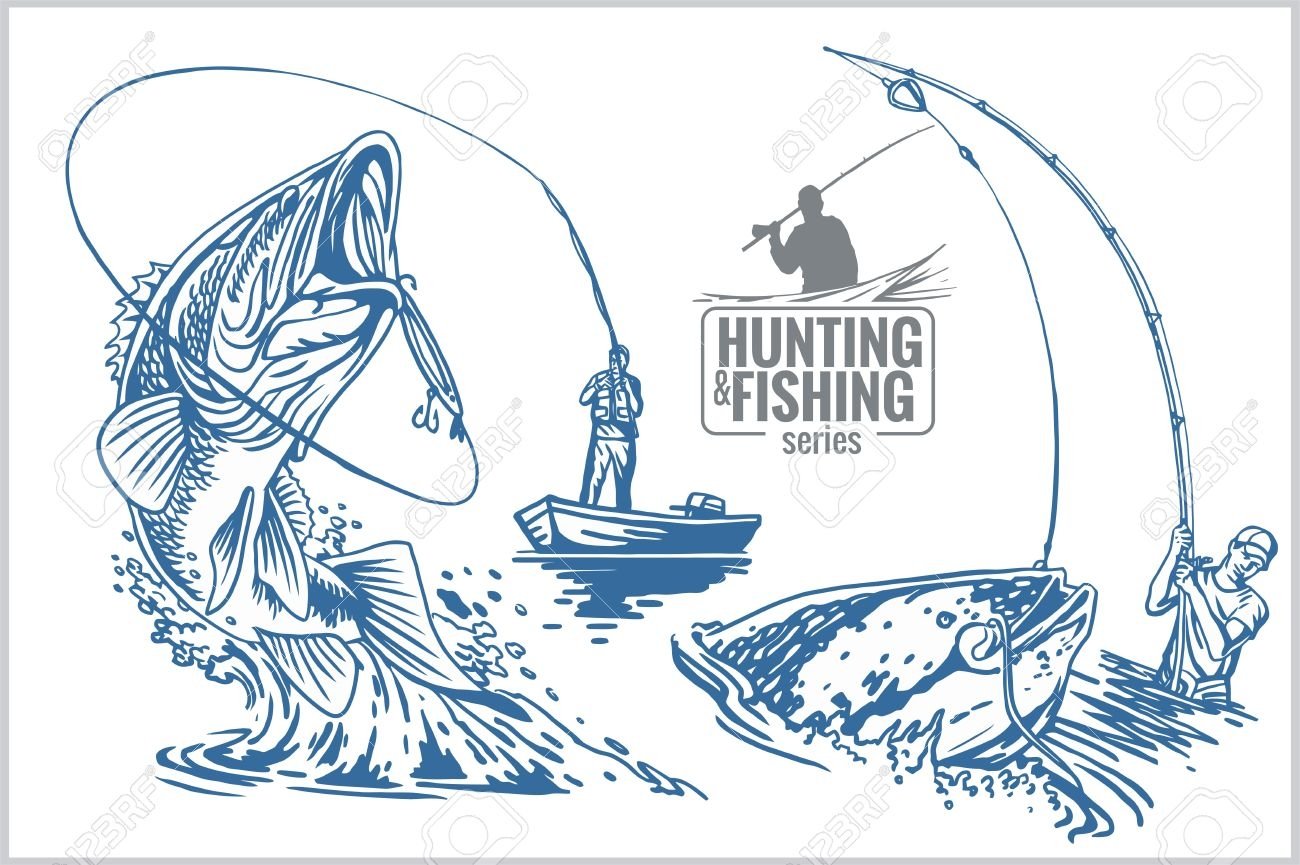 ![Рыбак и рыба векторное изображение]()