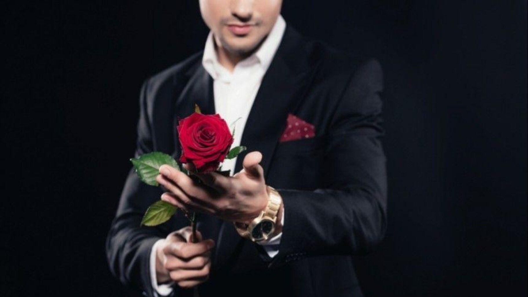 ![Парень в костюме с розой]()
