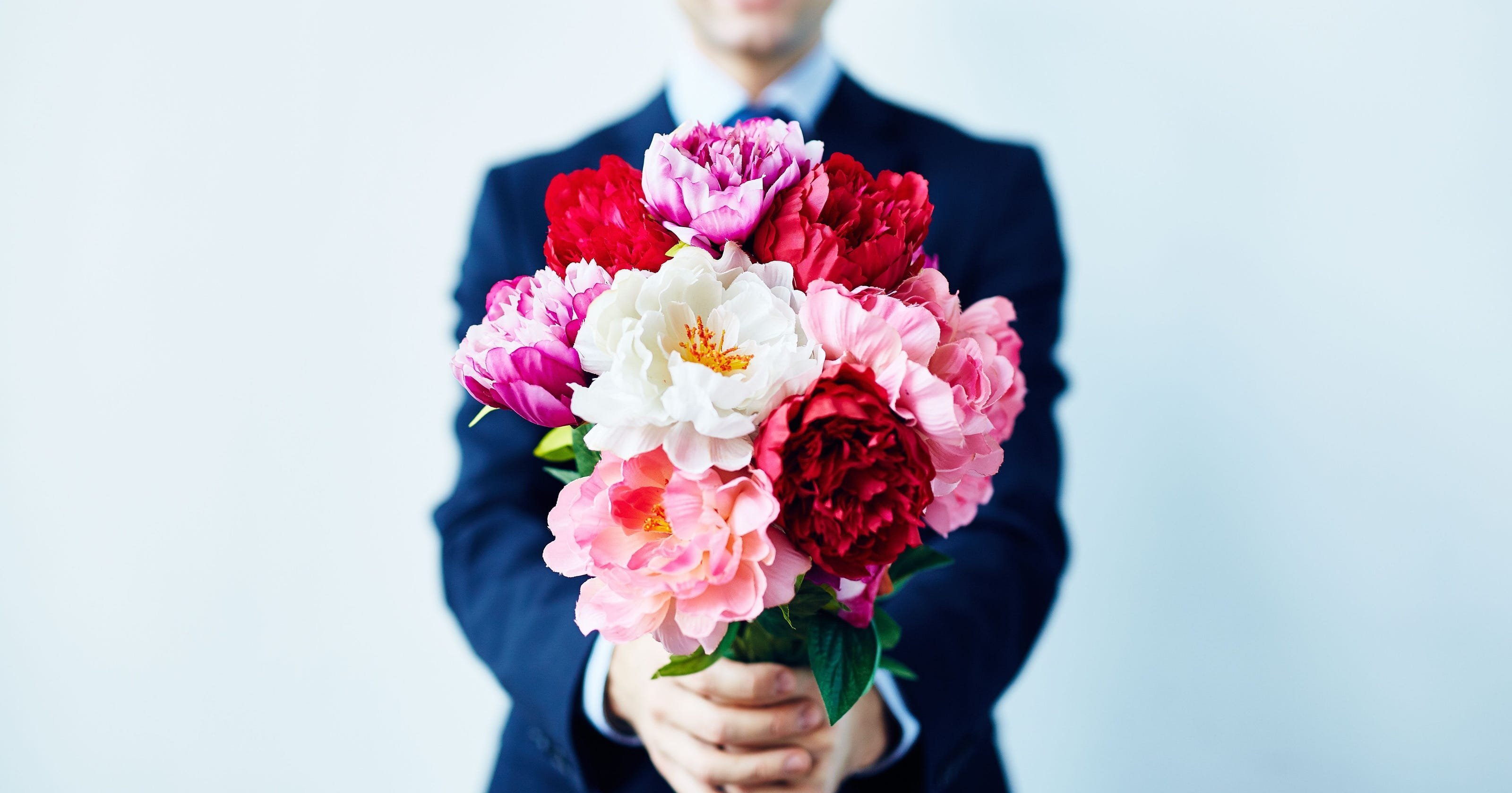 ![Мужчина с цветами картинки красивые]()