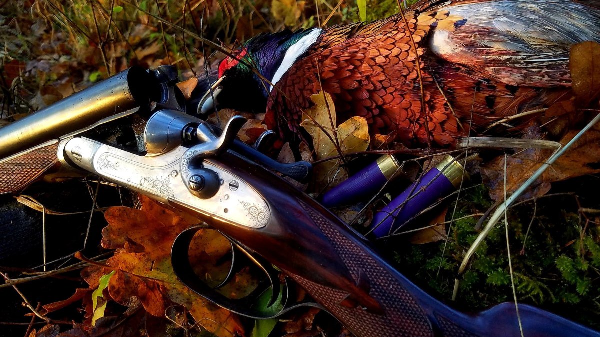 ![Охотничье ружье на траве]()