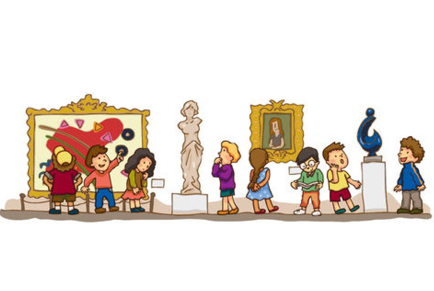 ![Мультяшные дети в музее]()