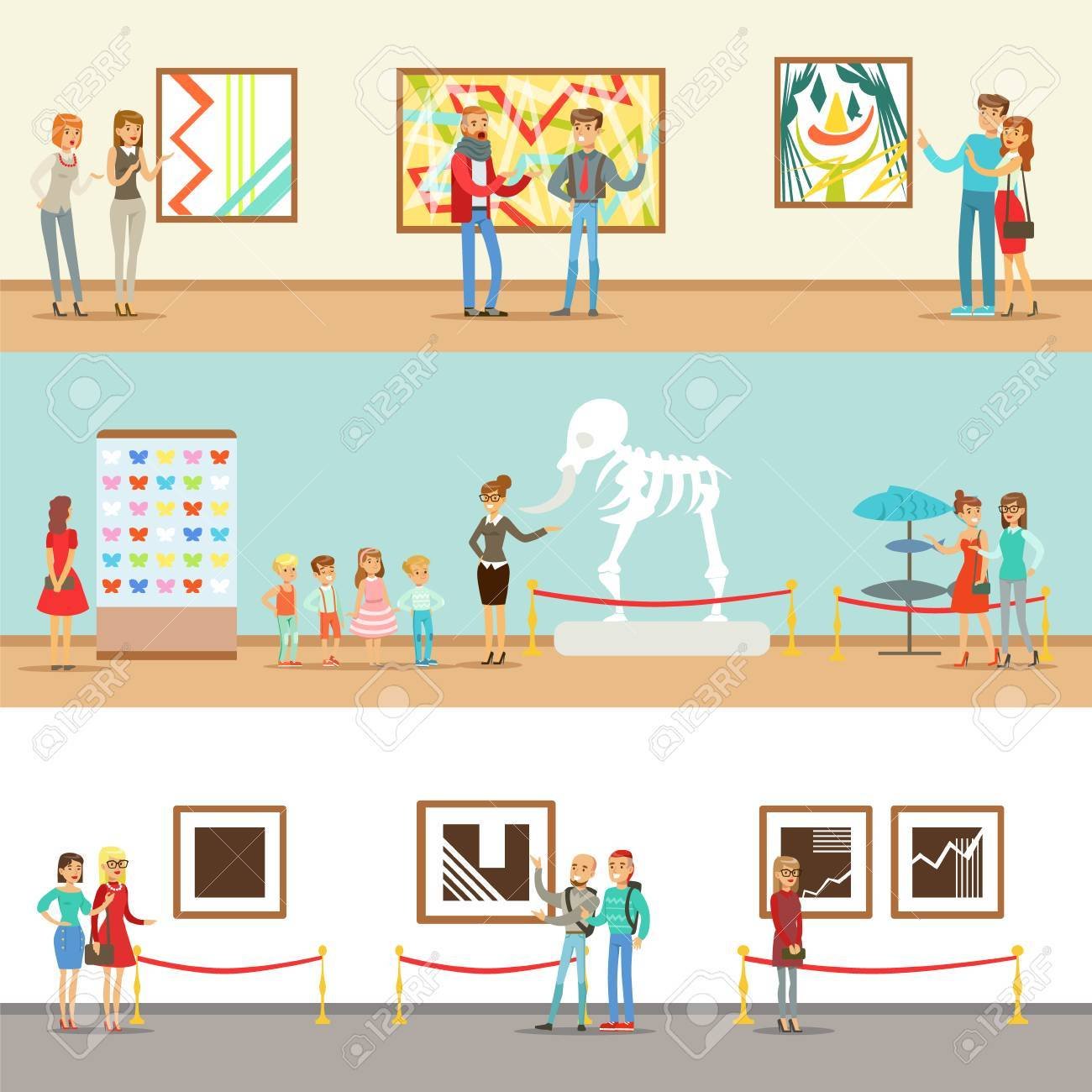 ![Люди в музее вектор]()