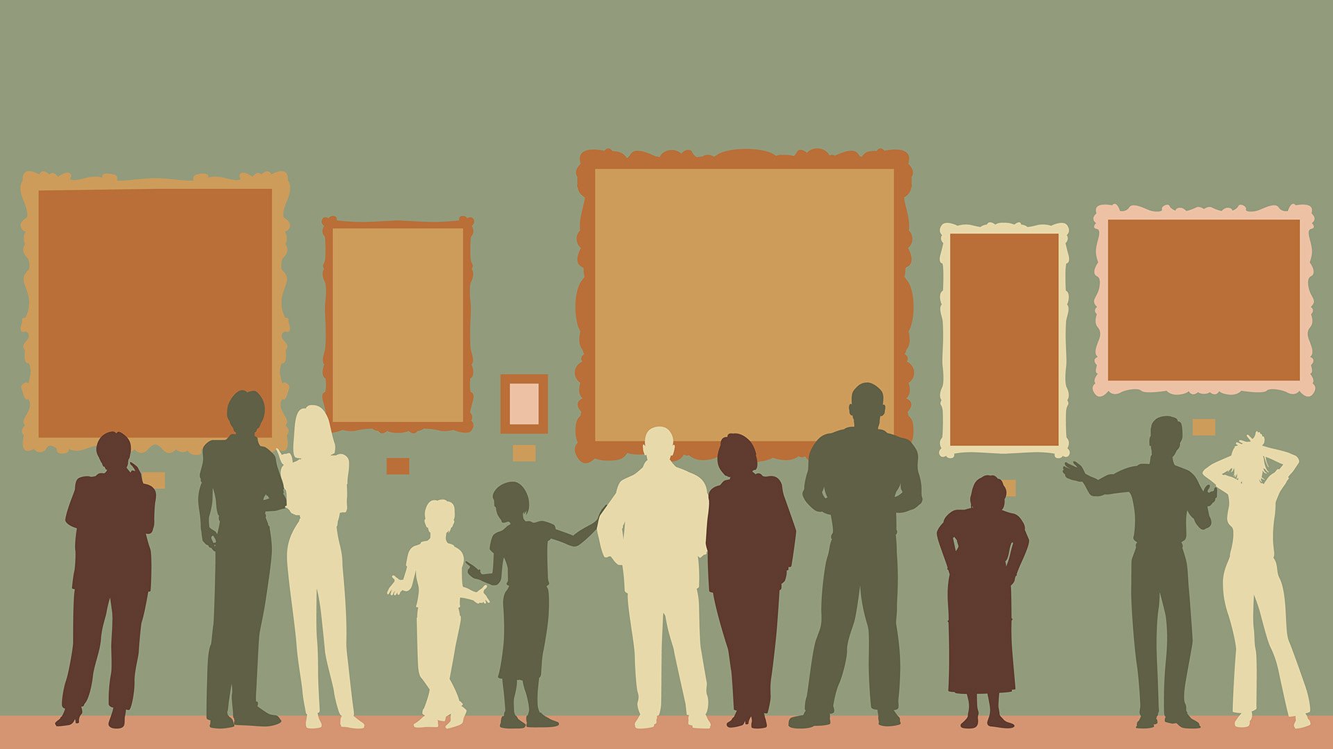 ![Силуэты людей в музее]()
