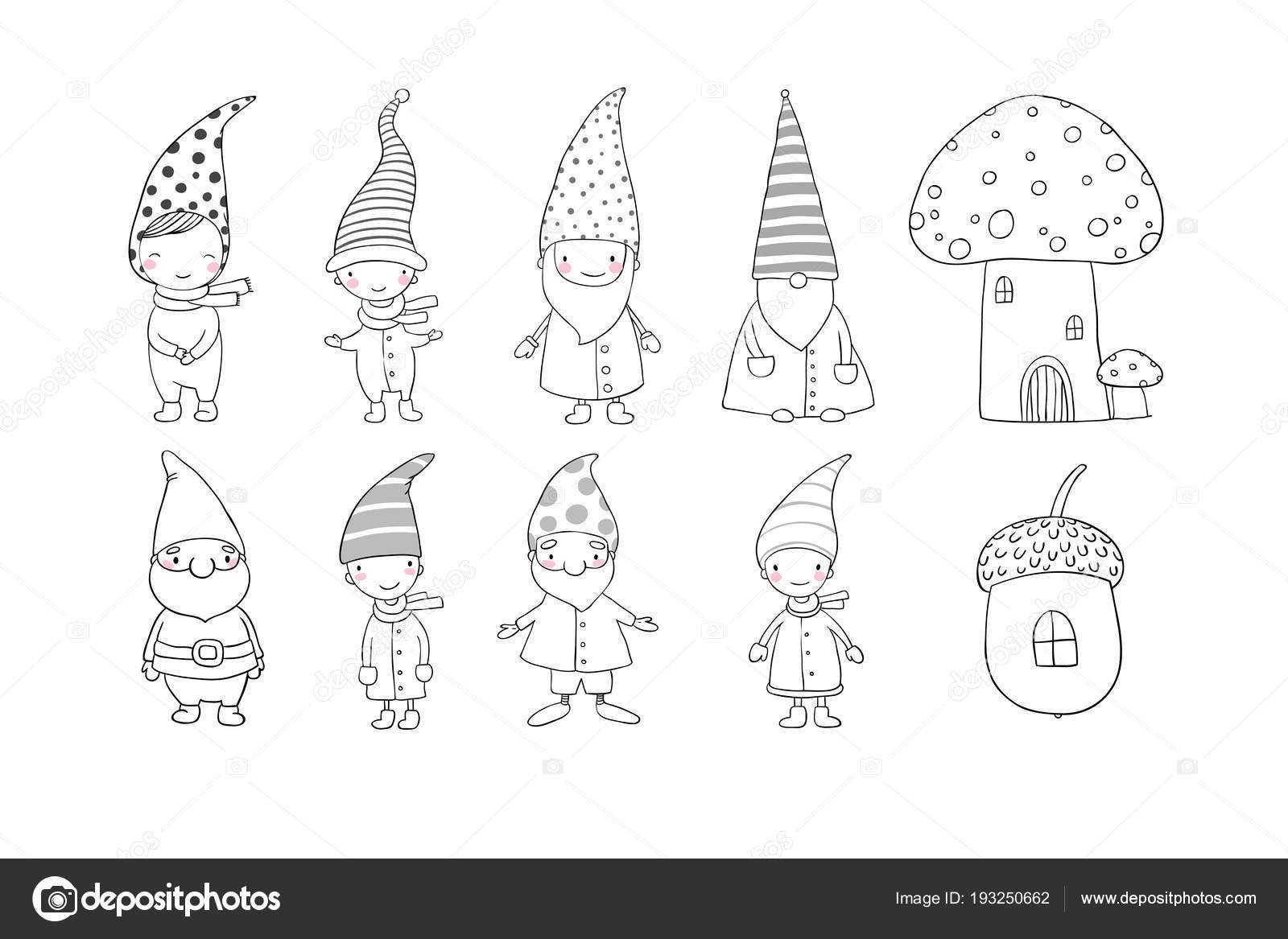 ![Гномы в шапочках раскраски]()
