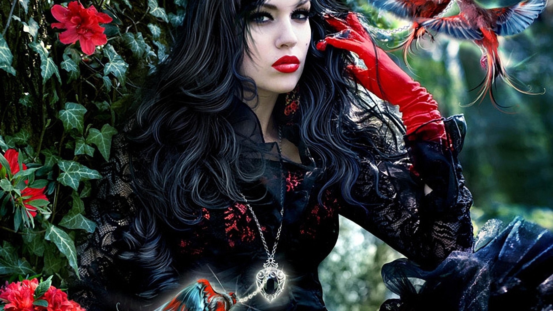 ![Красивая ведьма с вороном]()