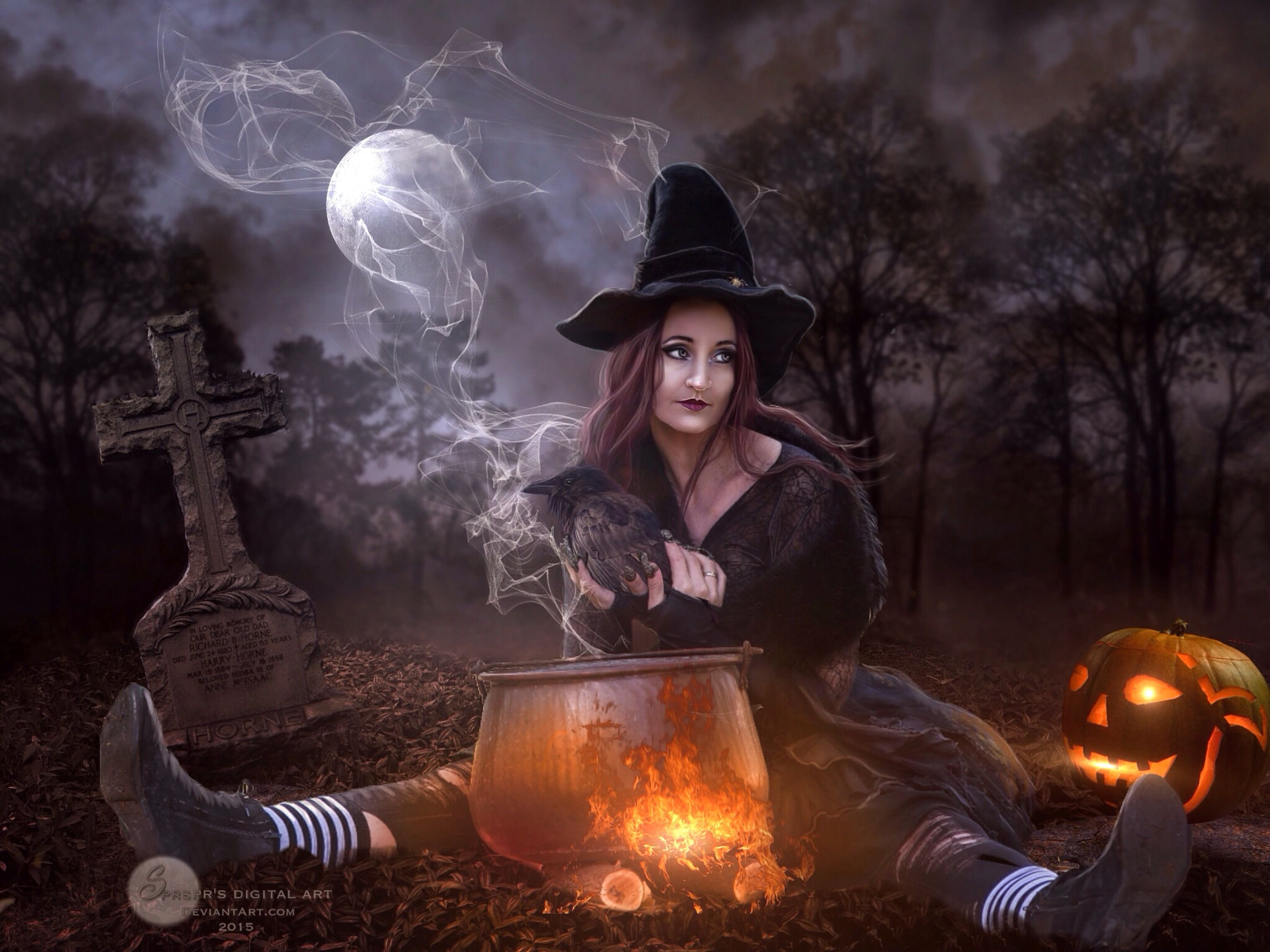 ![Ведьма на кладбище]()