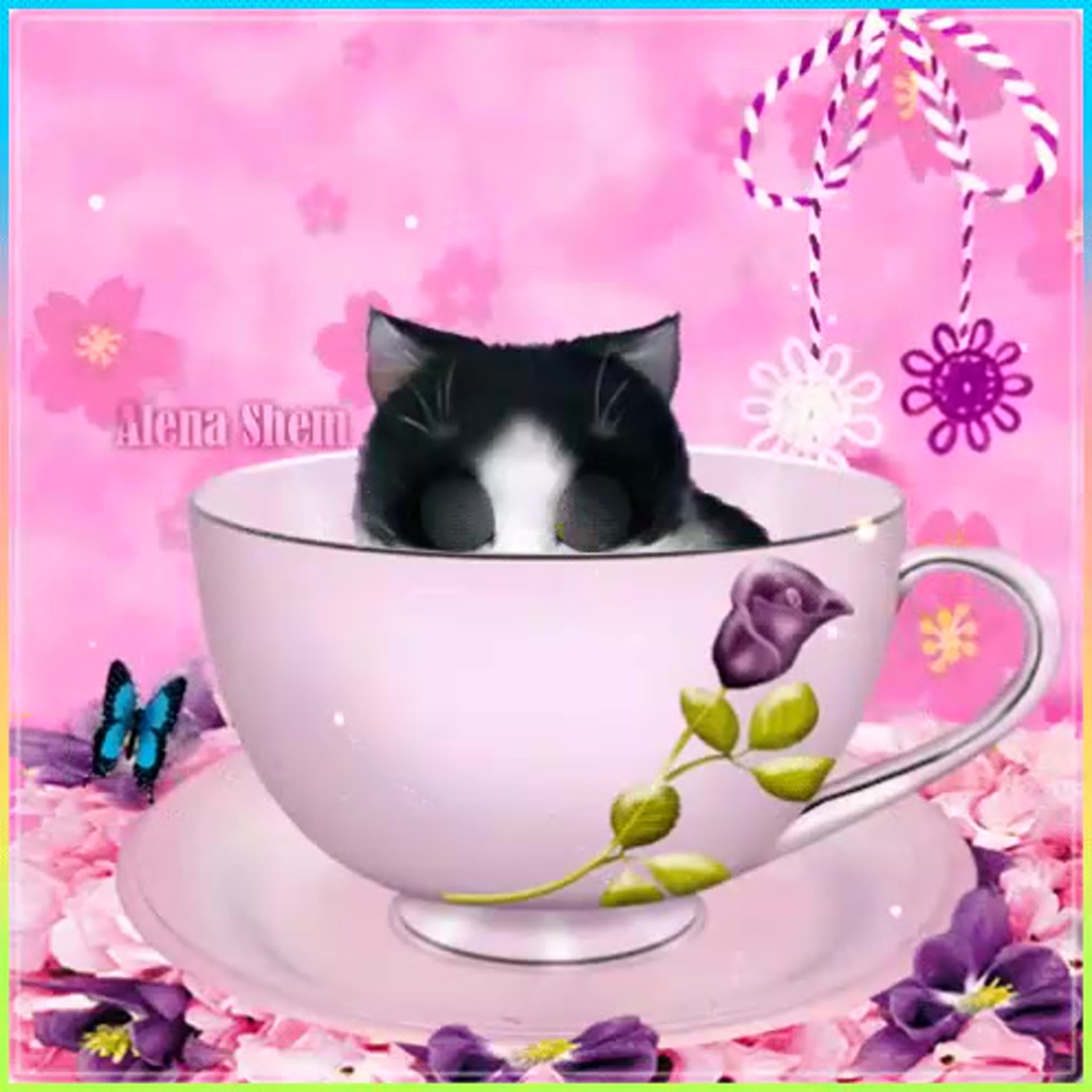 С добрым утром котенок в чашке