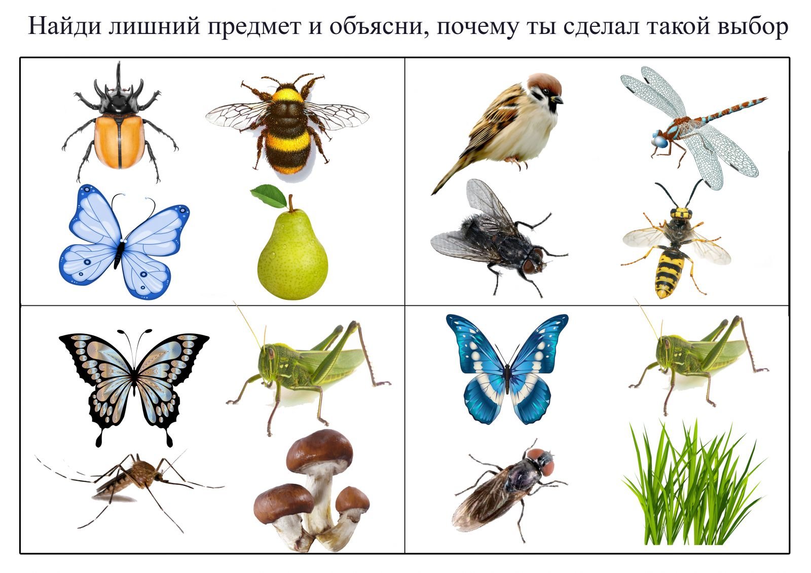 Игра четвертый лишний насекомые для детей 6-7 лет в картинках