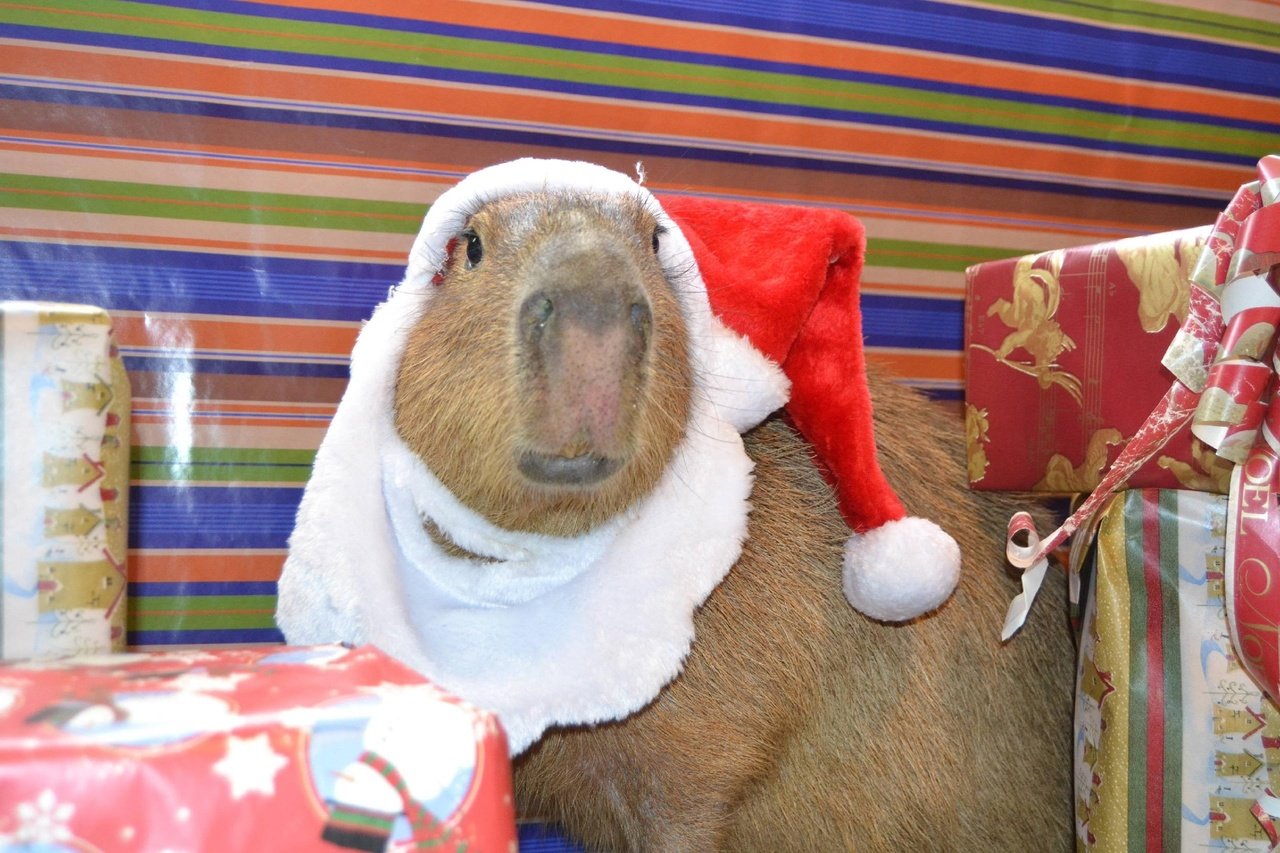 ![Рождественская капибара]()