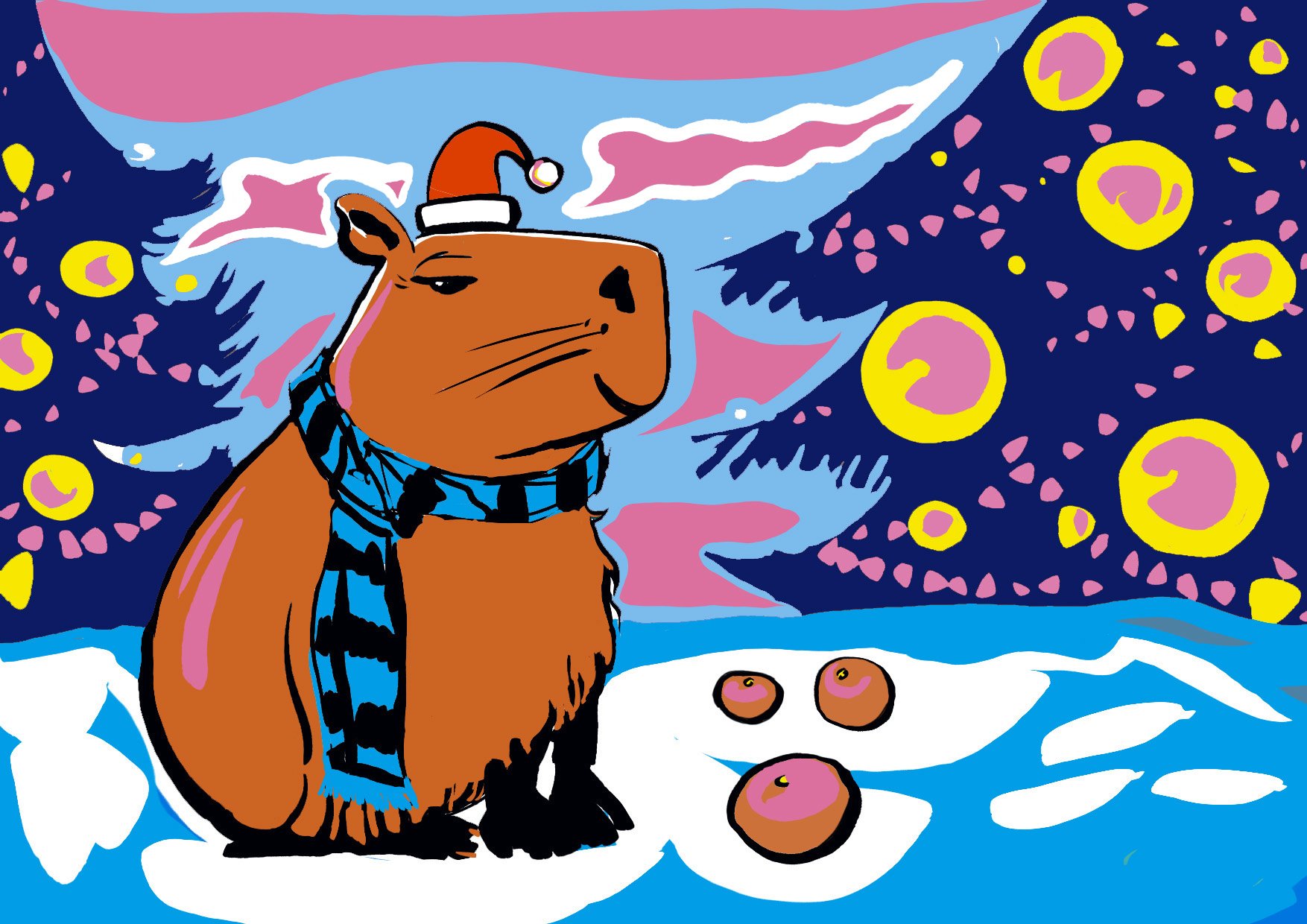 ![Капибара новый год рисунки]()