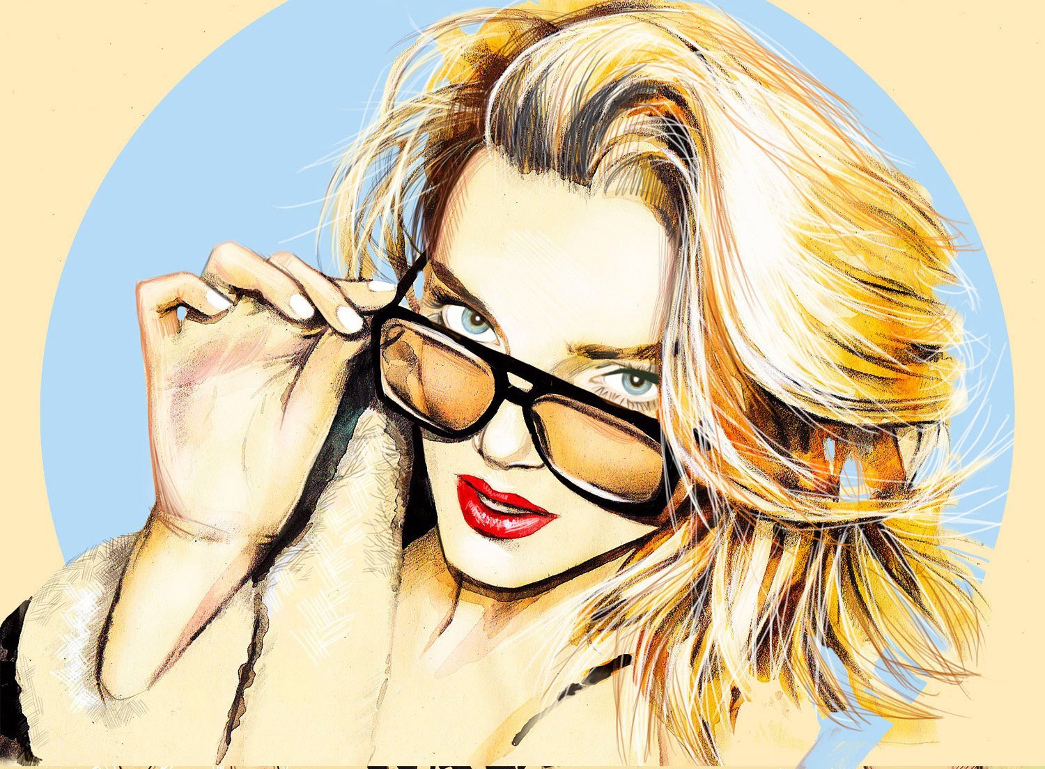 ![Нарисованная блондинка с красными губами]()