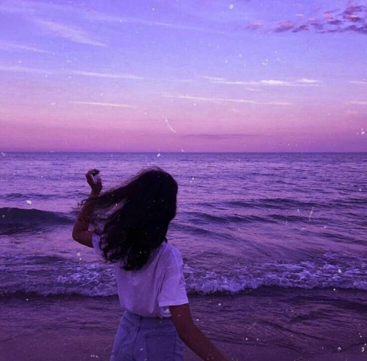 ![Девушка на берегу моря на закате]()
