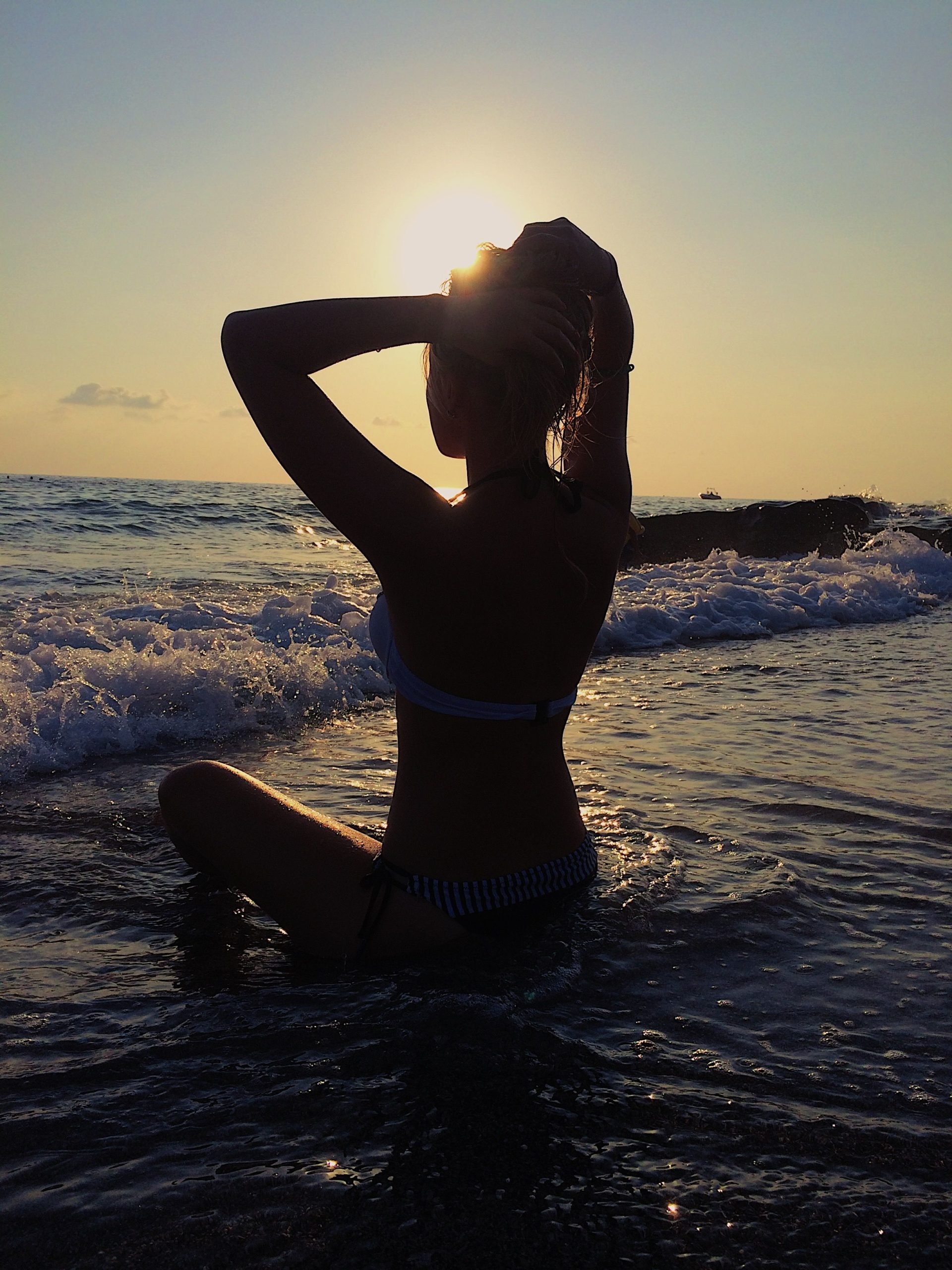 Девушка на море со спины