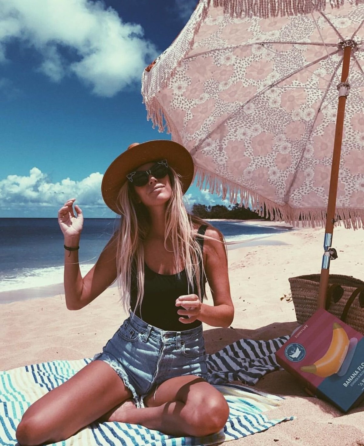 Блондинка в шляпе на море