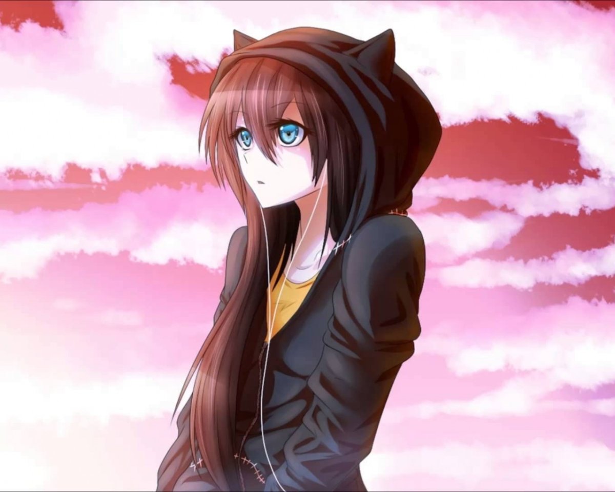 Аниме девушки в толстовках