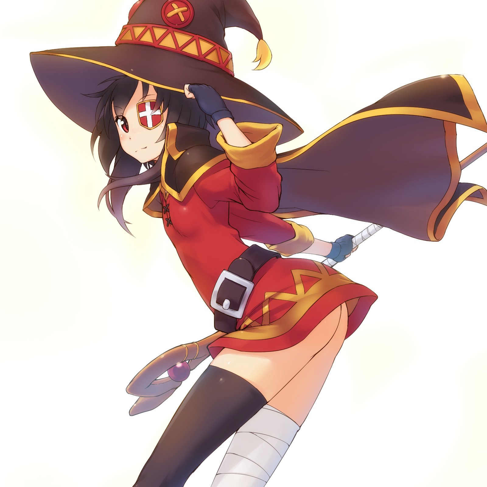 ![Мегумин обнимает посох 4k]()