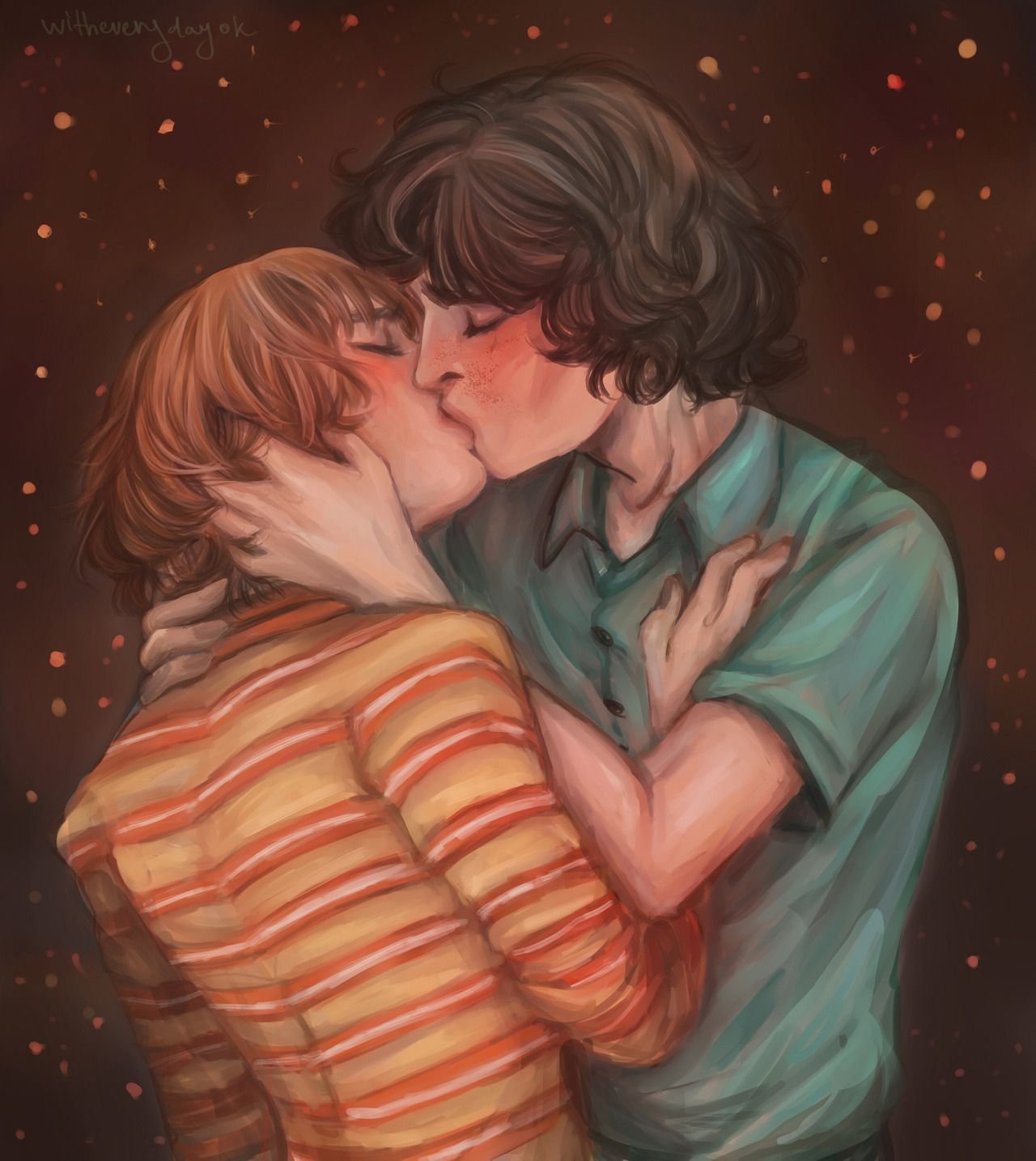 ![Майк Уилер и Уилл Байерс поцелуй]()