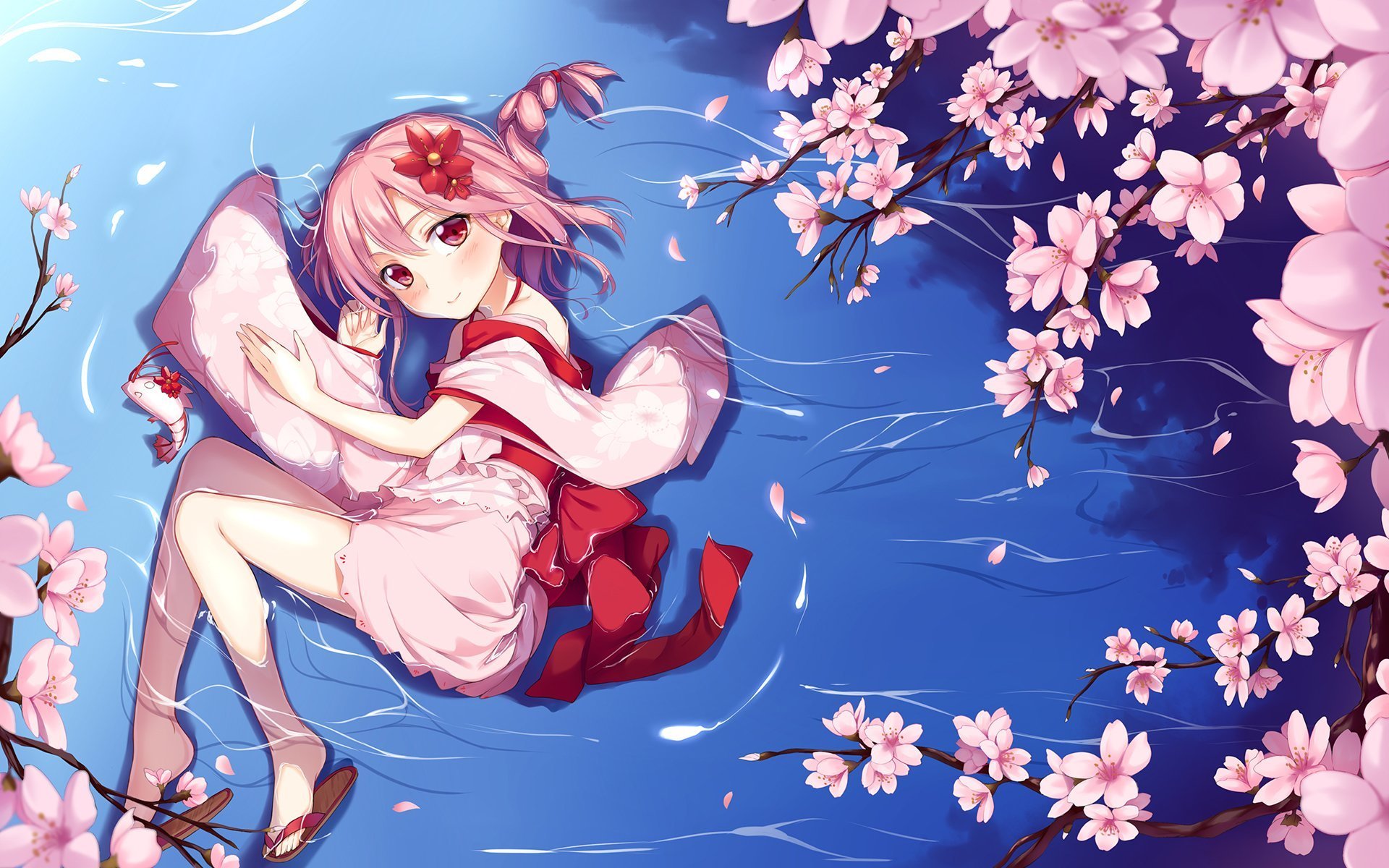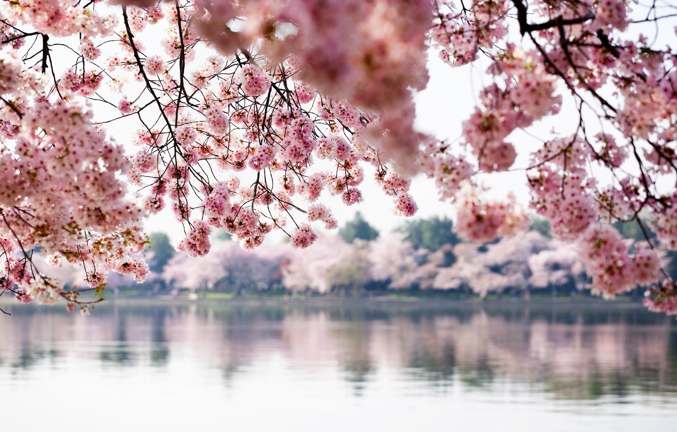 Сакура и вода обои