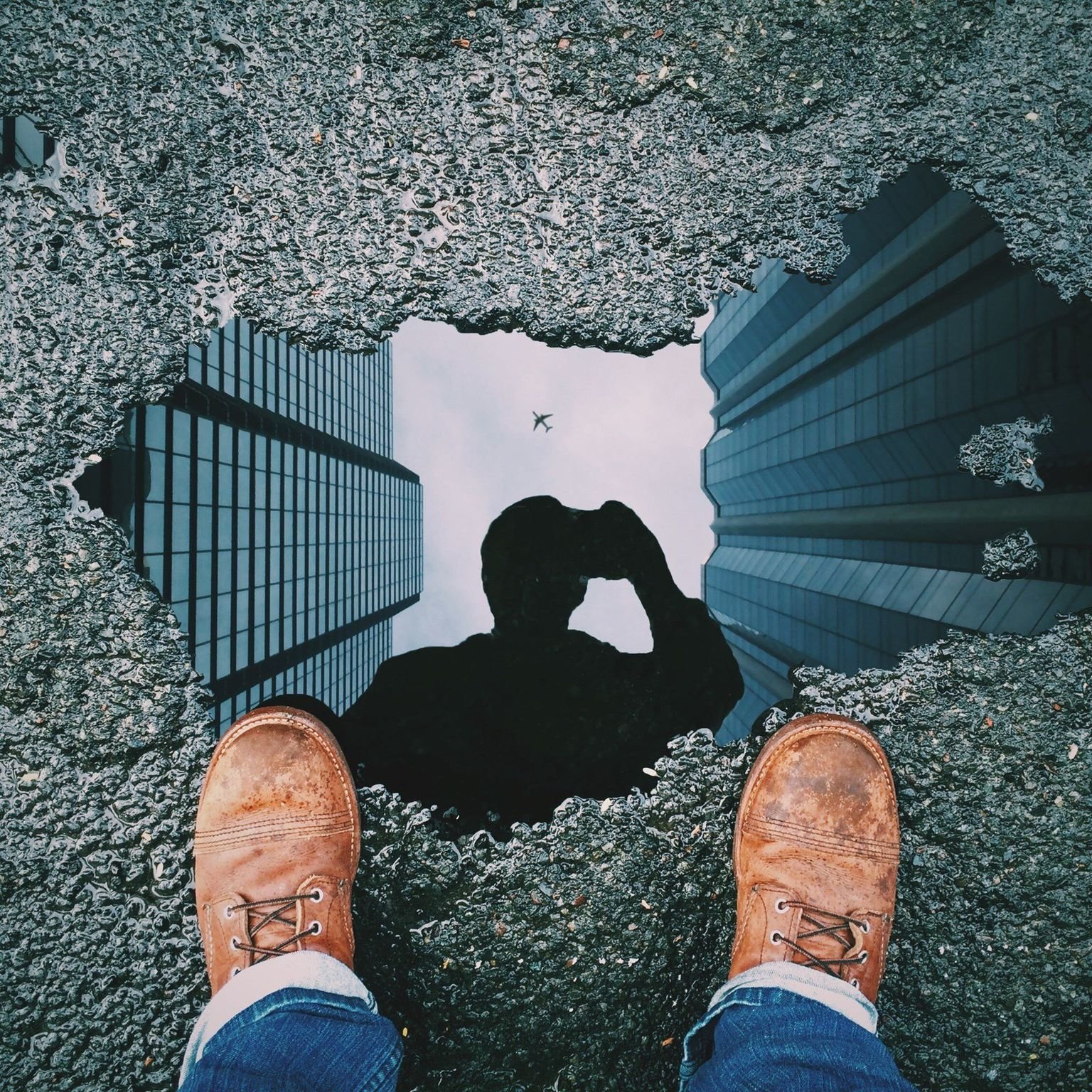 Отражение человека в луже