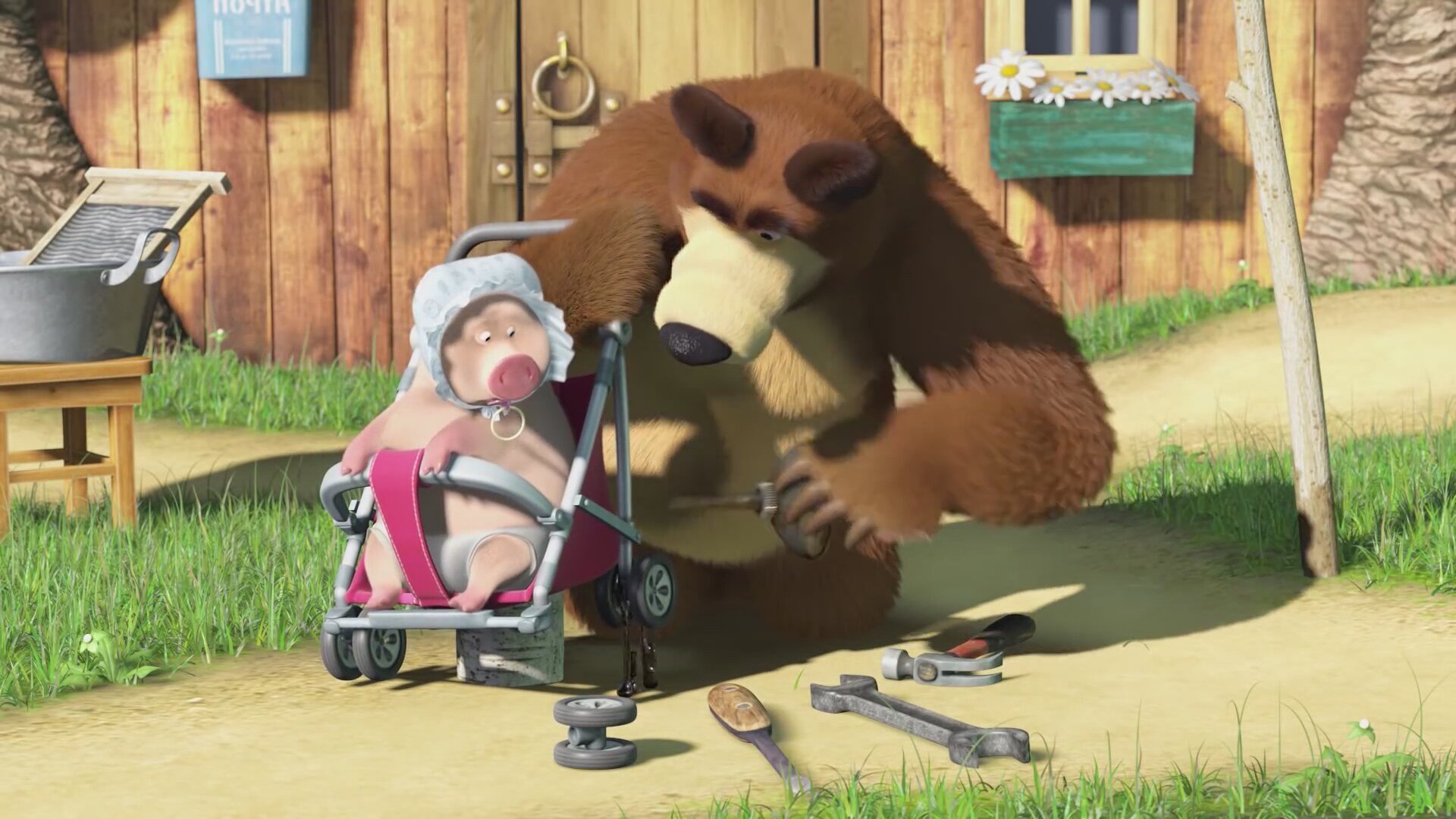 Маша и медведь Маша сидит