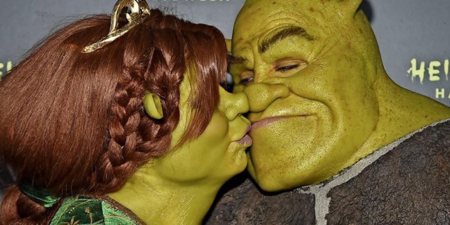 ![Принцесса Фиона и Шрек поцелуй]()