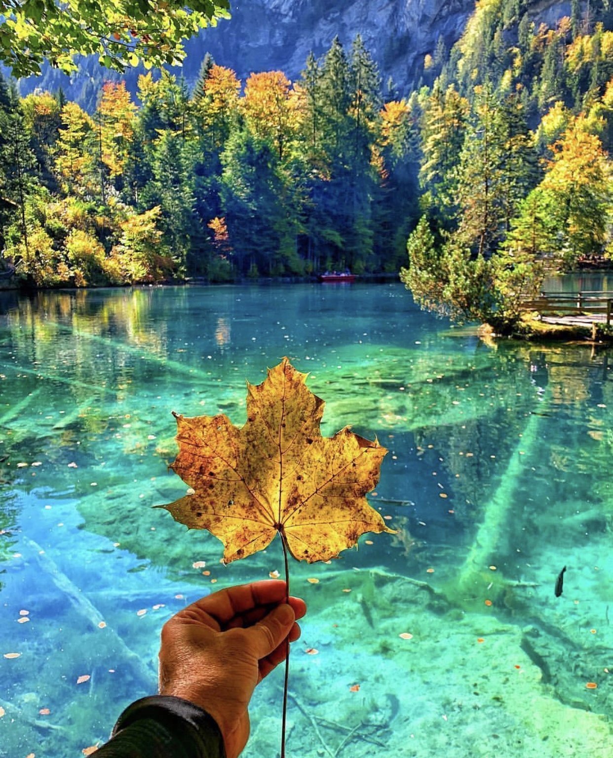 ![Озеро Блаузее Швейцария осень]()