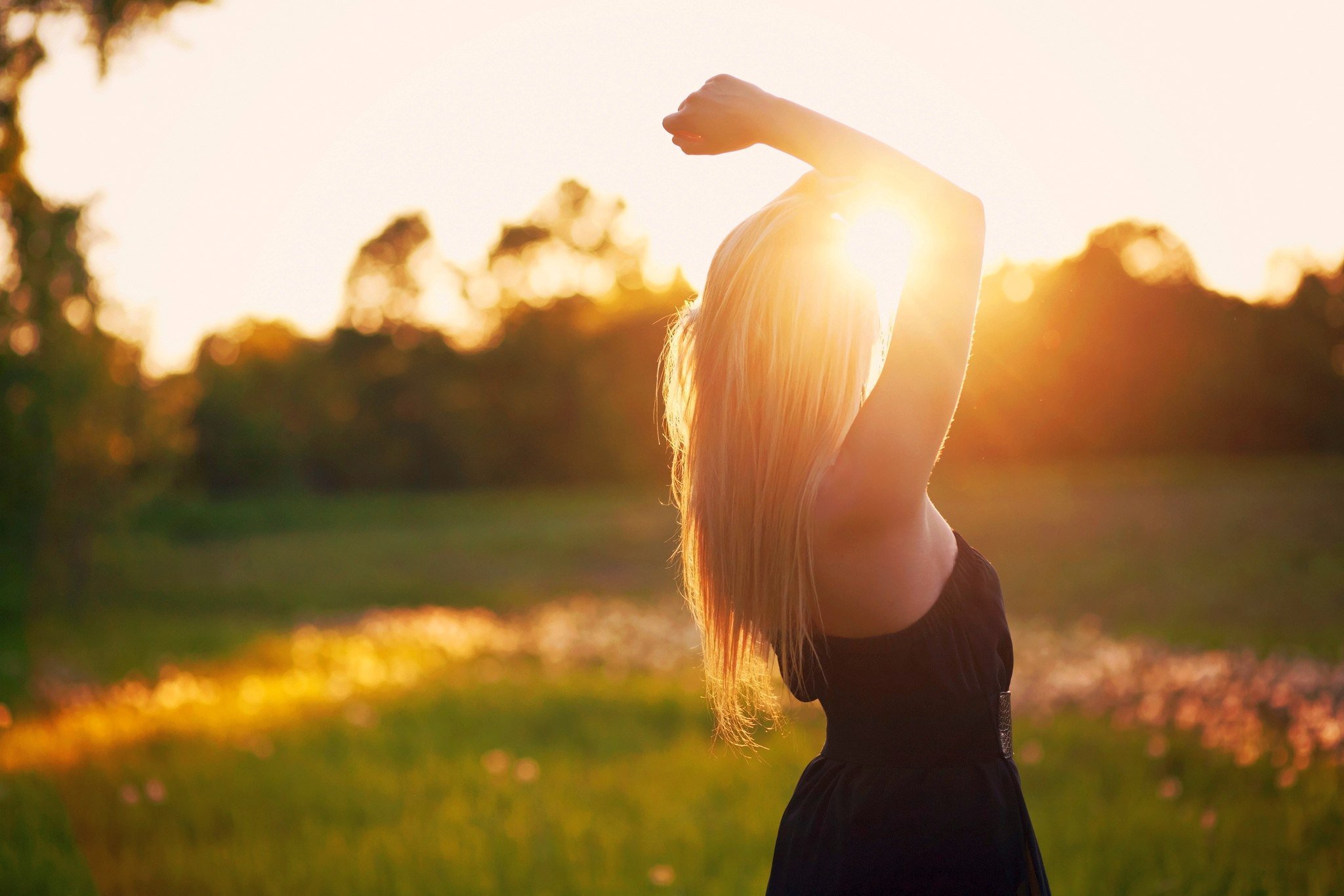 ![Девушка на природе со спины]()