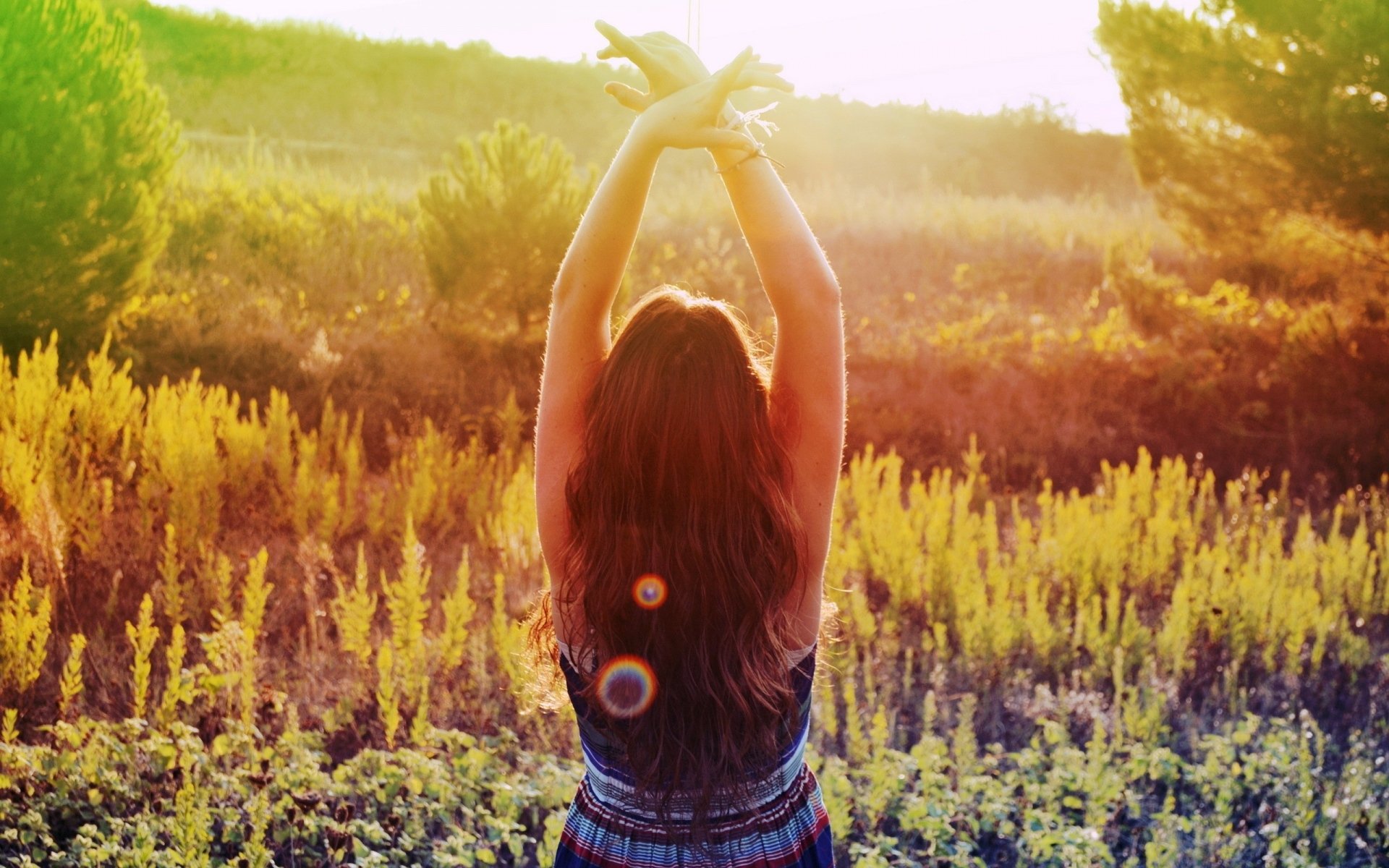 Девушка на природе со спины