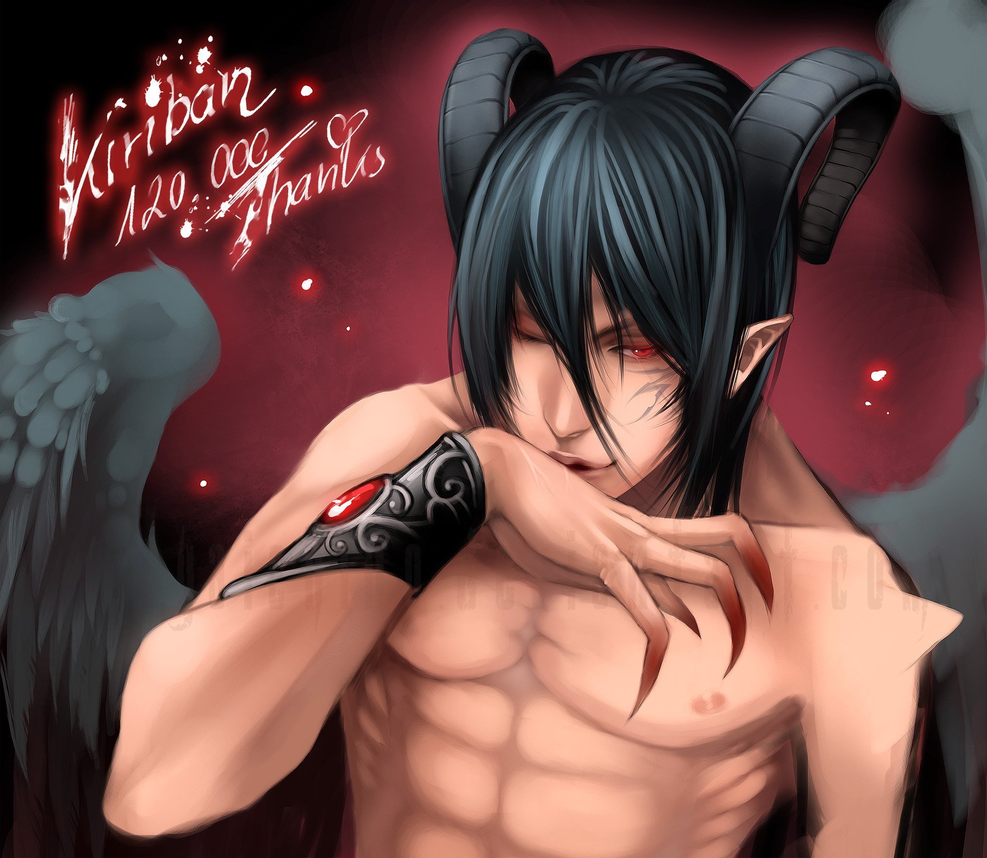 ![Парень с чёрными волосами и красными глазами]()