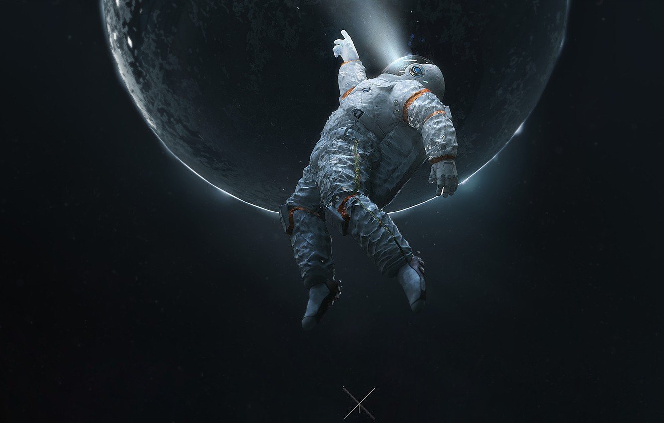 ![Космонавт в космосе арт]()