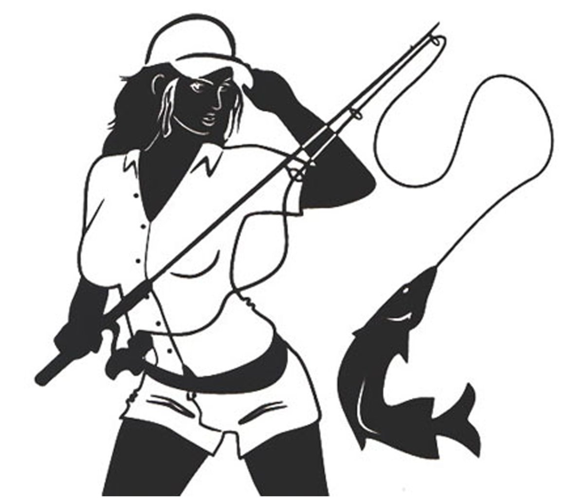 ![Силуэт девушки на рыбалке]()