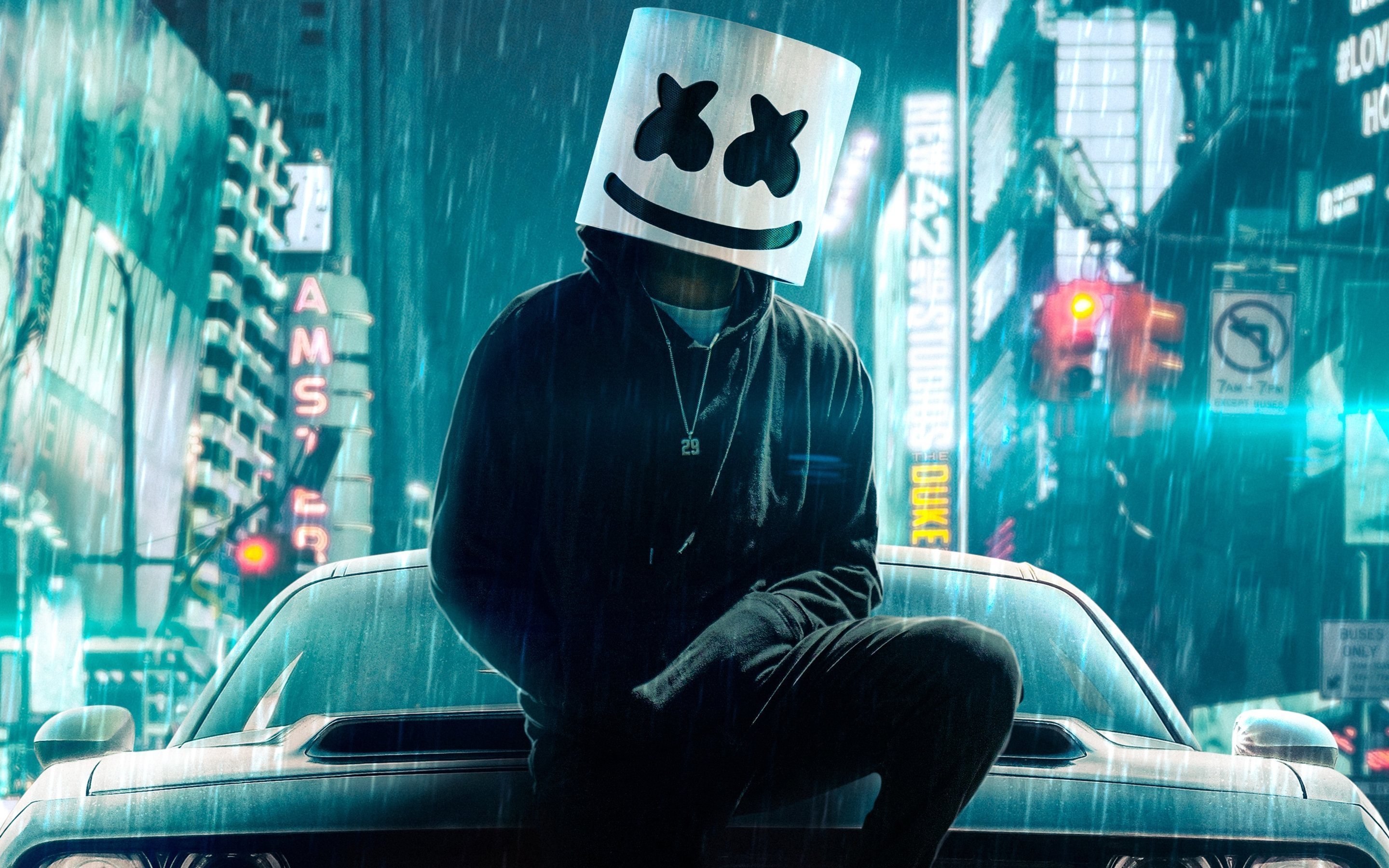 Парень в маске возле машины