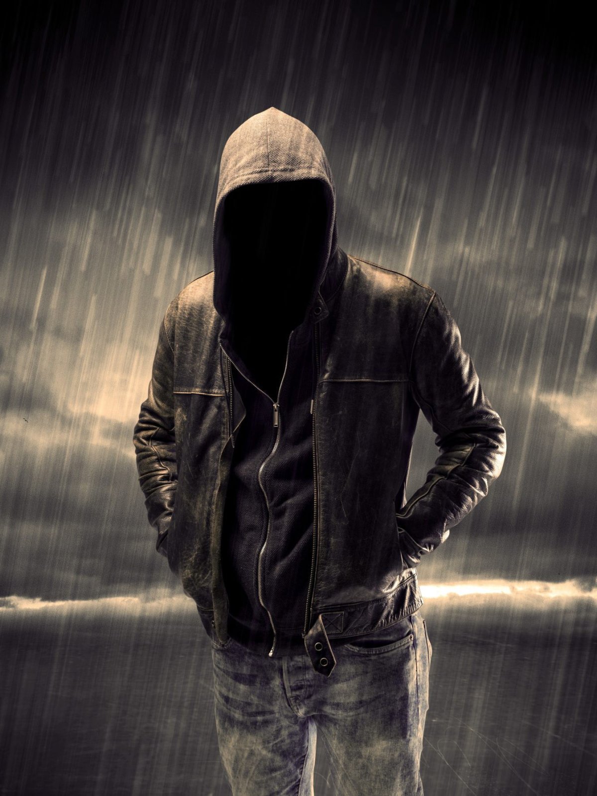 ![Человек в капюшоне у моря]()