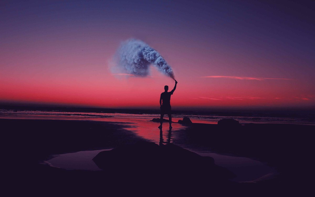 Курящий парень на закате