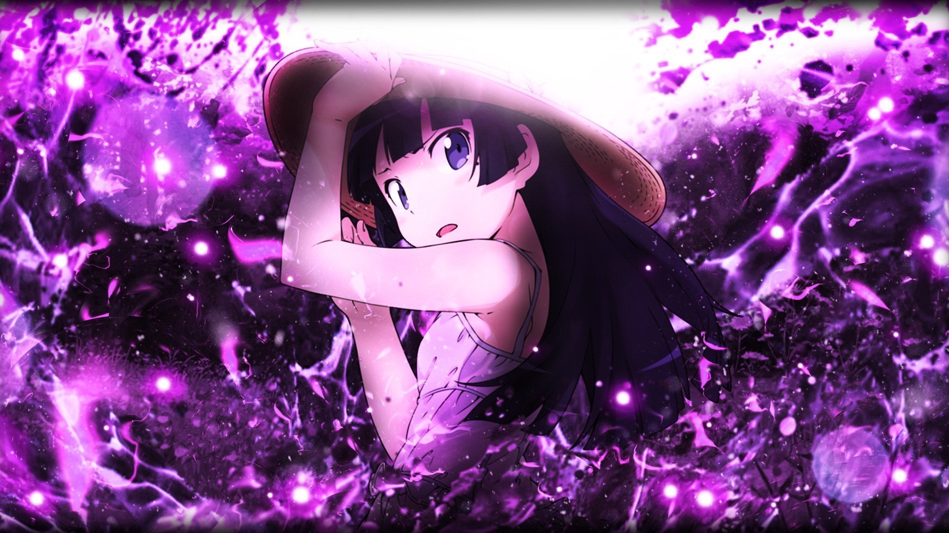 Аниме обои на фиолетовом фоне