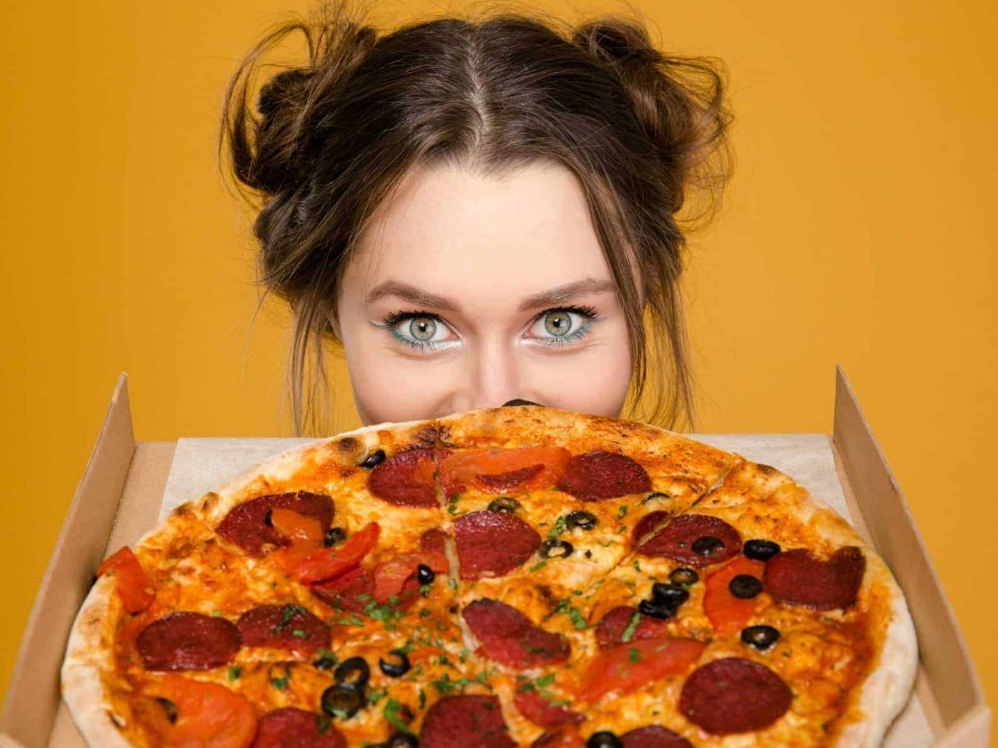 Девушка с пиццей в руках
