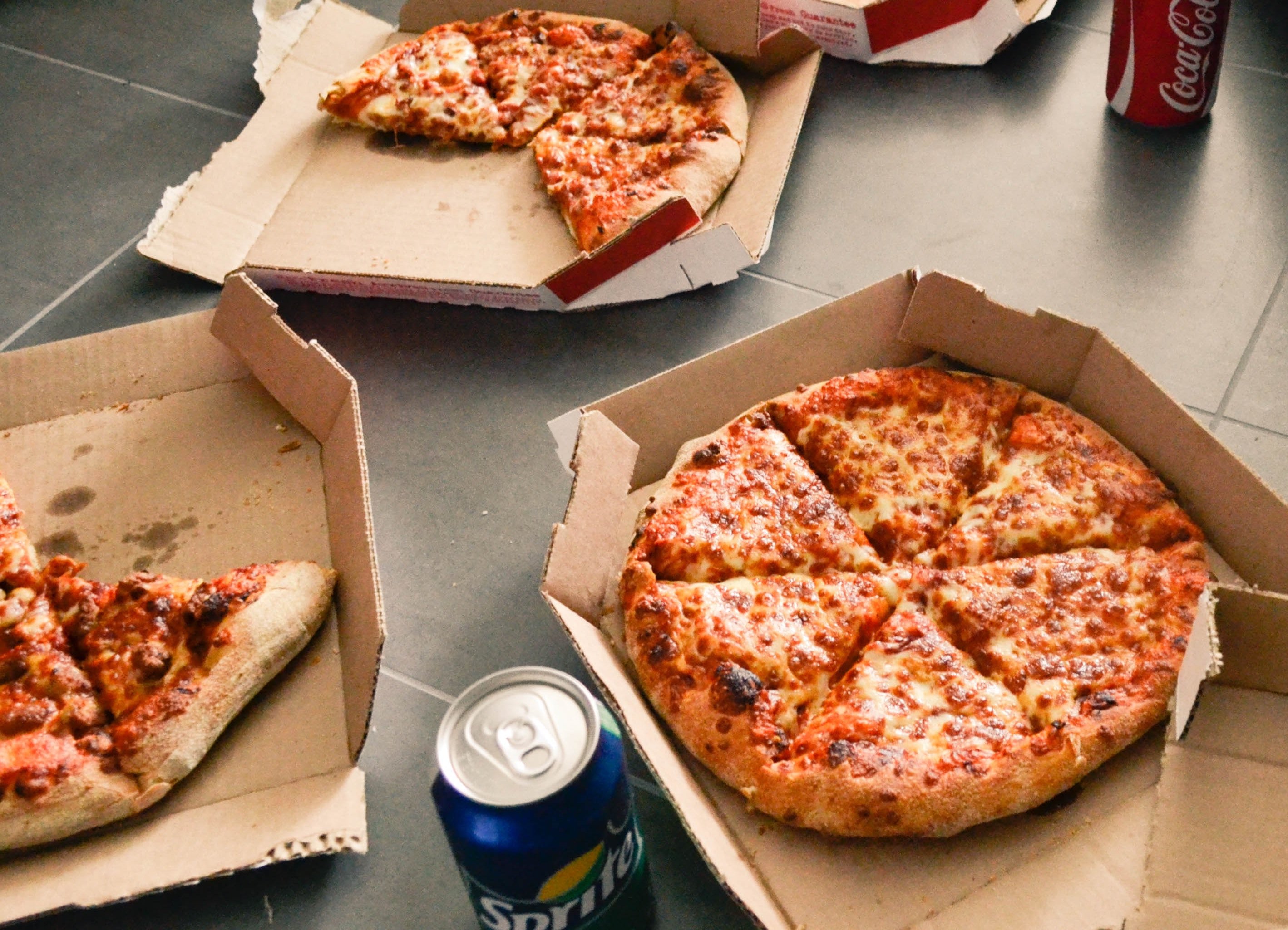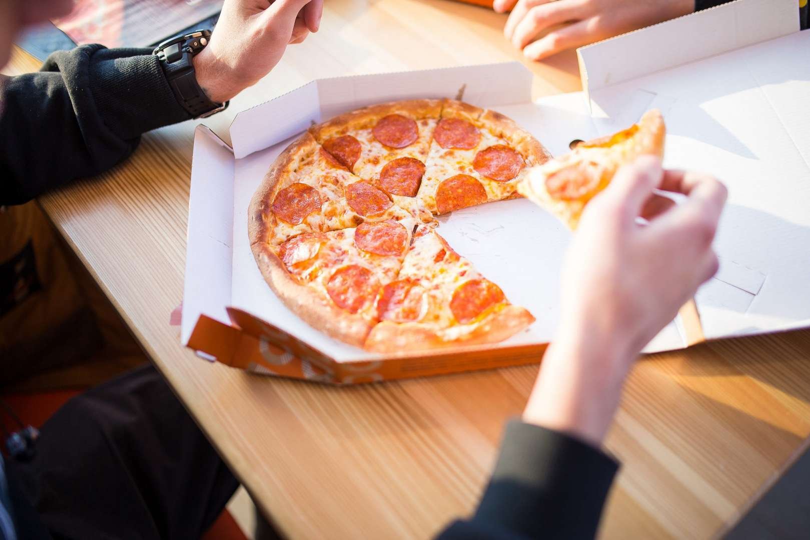 Доставщик пиццы ест пиццу