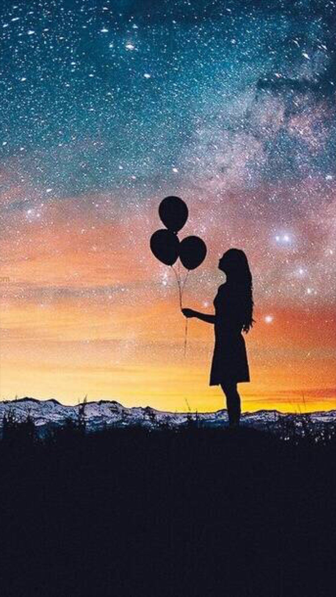 ![Силуэт девушки на Звездном небе]()