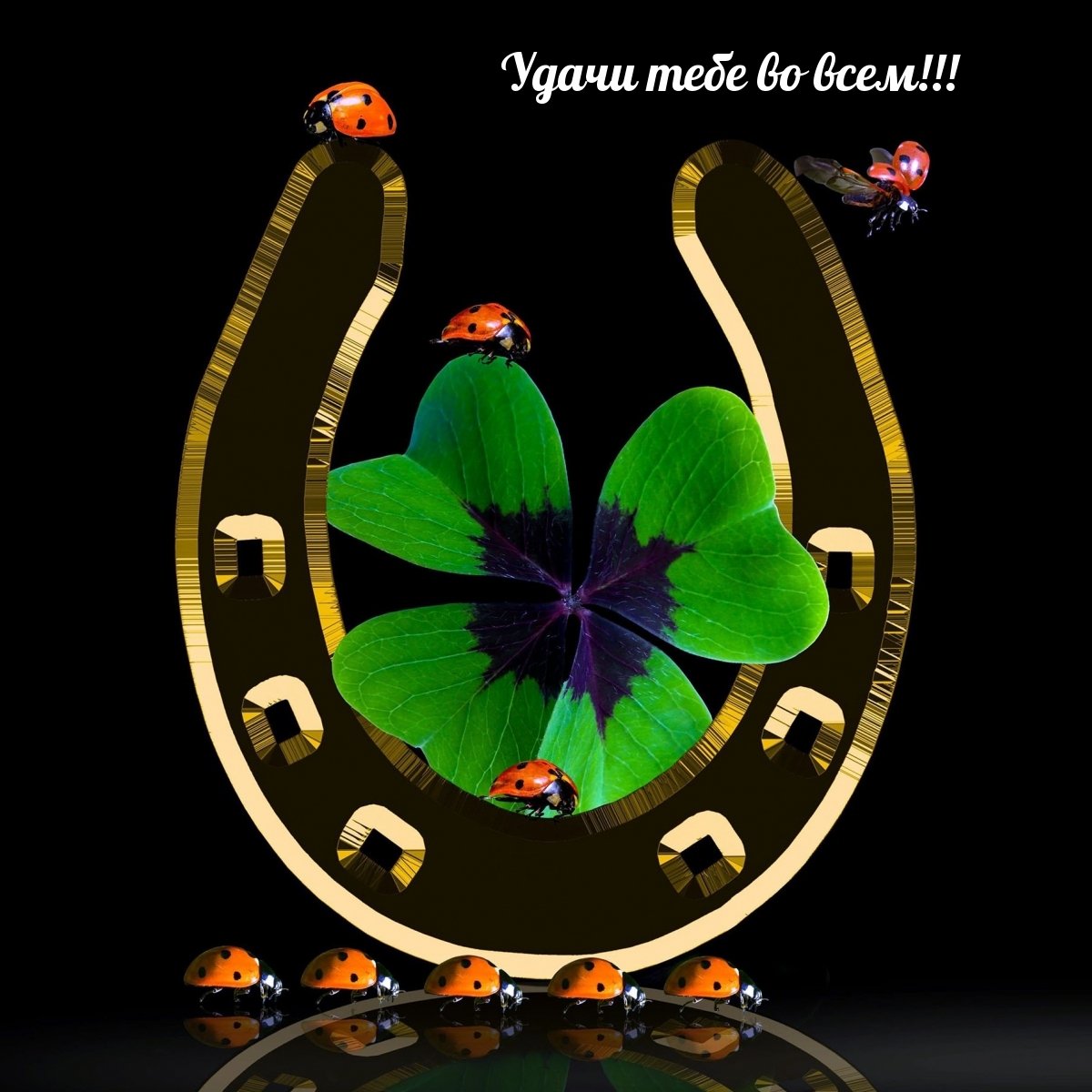 Клевер четырехлистный подкова и Божья коровка