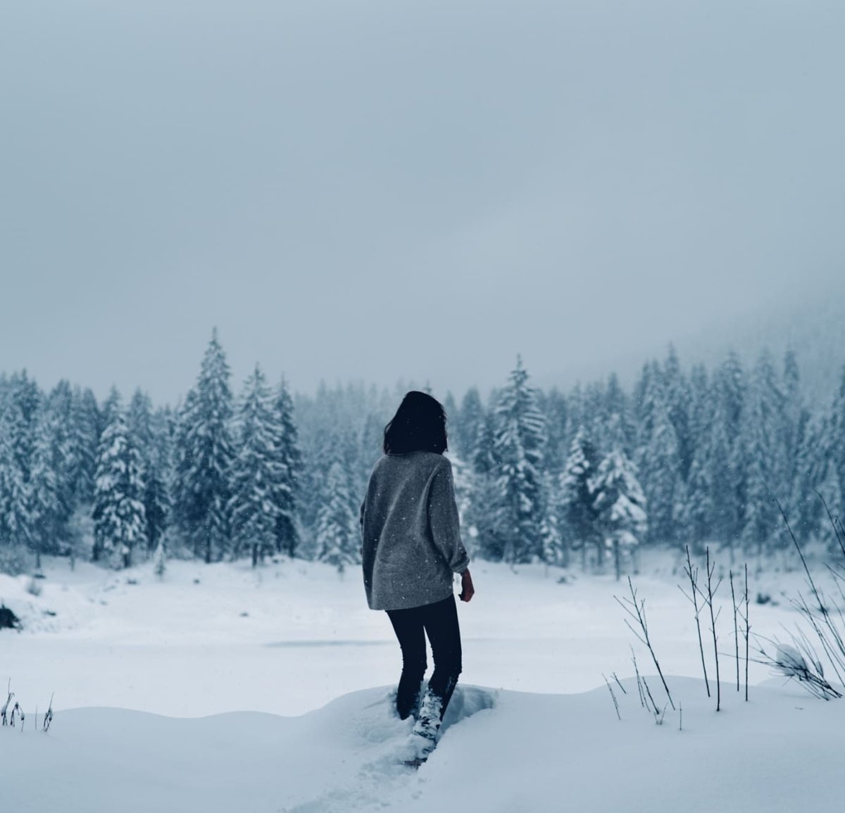Девушка зимой со спины